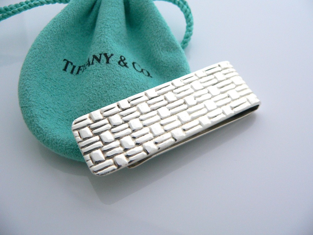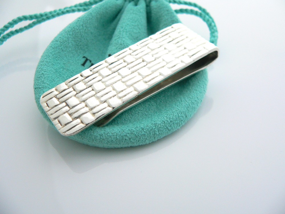 Overview: Offered for sale is a rare and unique Tiffany and Co. Sterling Silver Weave Money Clip. Very cool, retro piece that is sure to be a conversation starter! The money clip is pre-owned. It will certainly be something that will be used on a daily basis. The clip is no longer in production, making it a great piece for the collector. Perfect surprise for that someone special! The piece is fully hallmarked and is guaranteed to be 100% authentic. Wonderful present for yourself or anyone you love! Will surely delight! Particulars: Weight: 22.2 grams Metal & Hallmarks: Tiffany & Co. / Sterling Solid 925 sterling silver Please check out my other unique and interesting Tiffany items on sale.