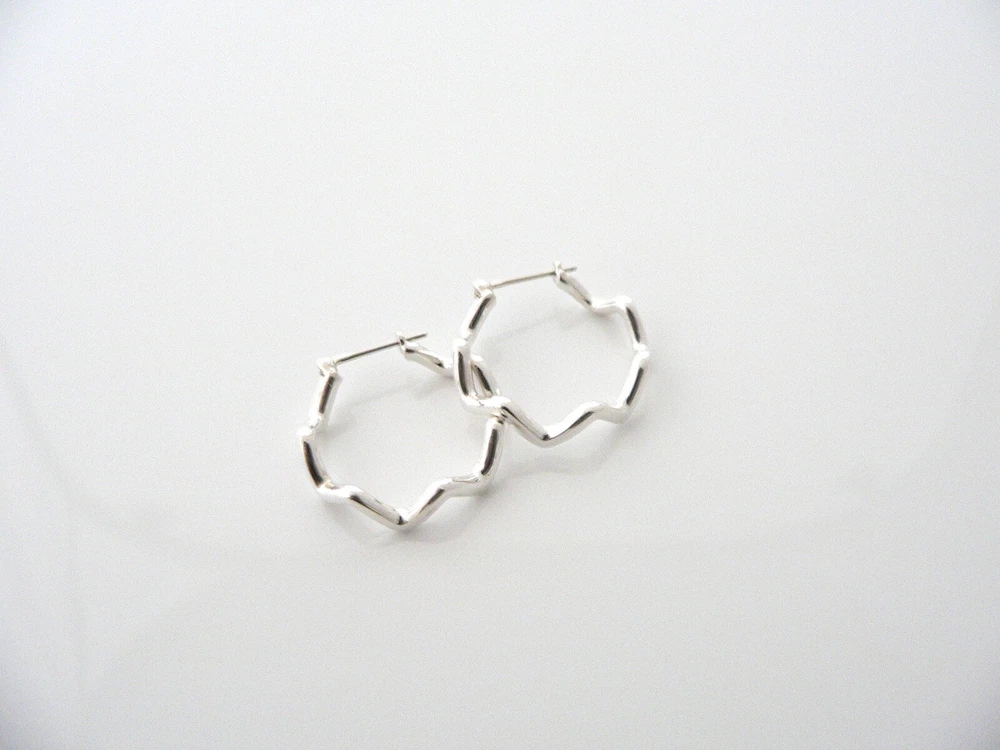 Overview: Looking for a pair of earrings that is elegant, classic and yet makes a great statement? Well, look no further - you just stumbled upon it right here on Ebay! :) Offered for sale is a gorgeous and rare Tiffany & Co Sterling Silver Zig Zag Hoop earrings. Made from solid and bright Tiffany silver, yet maintains its delicate and feminine feel! Looks and feels wonderful on your ears. I am 100% positive that you will want to use yours over and over again as well. Your friends will be fascinated by this gorgeous piece – it is almost like a work of art! The look of the piece is simple, classic, and very elegant. The pair works with pretty much anything you put on … and adds a touch of "Tiffany" style and pizazz to it! They are in great condition! A perfect and rare Tiffany piece to start or add to your collection. The earrings are fully hallmarked and guaranteed to be 100% authentic. Wonderful present for yourself or anyone you love! Will surely delight! Particulars: Size & Measurements: The hoops are approx. 0.9 inches in diameter. Metal & Hallmarks: T & Co. / Picasso / 925 Solid 925 sterling silver Please check out my other unique and interesting Tiffany items on sale.