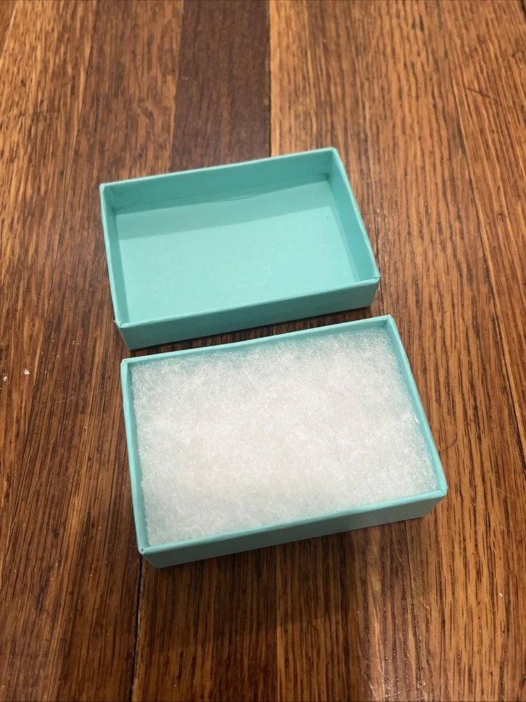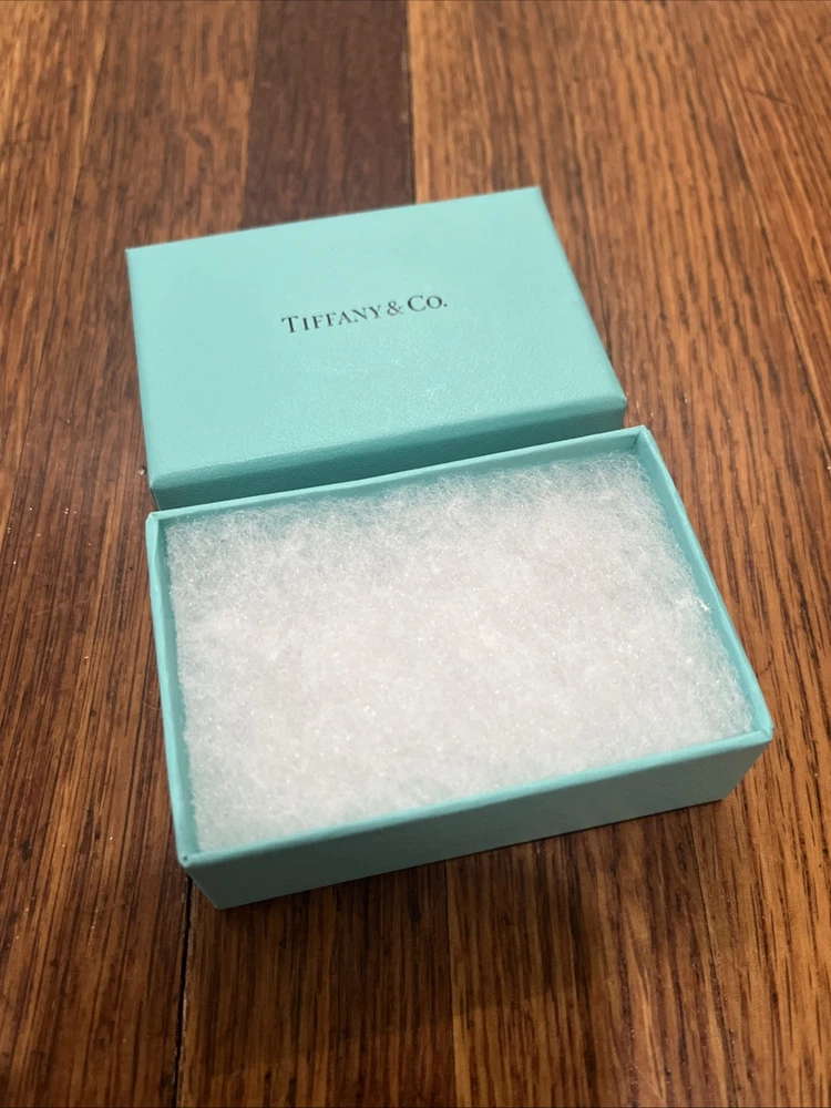 TIFFANY & CO. SMALL GIFT BOX FOAM INSERT MINOR SIGNS OF USE/ BOX HAS CREASES IN IT PLEASE SEE PHOTOS FOR CONDITION
