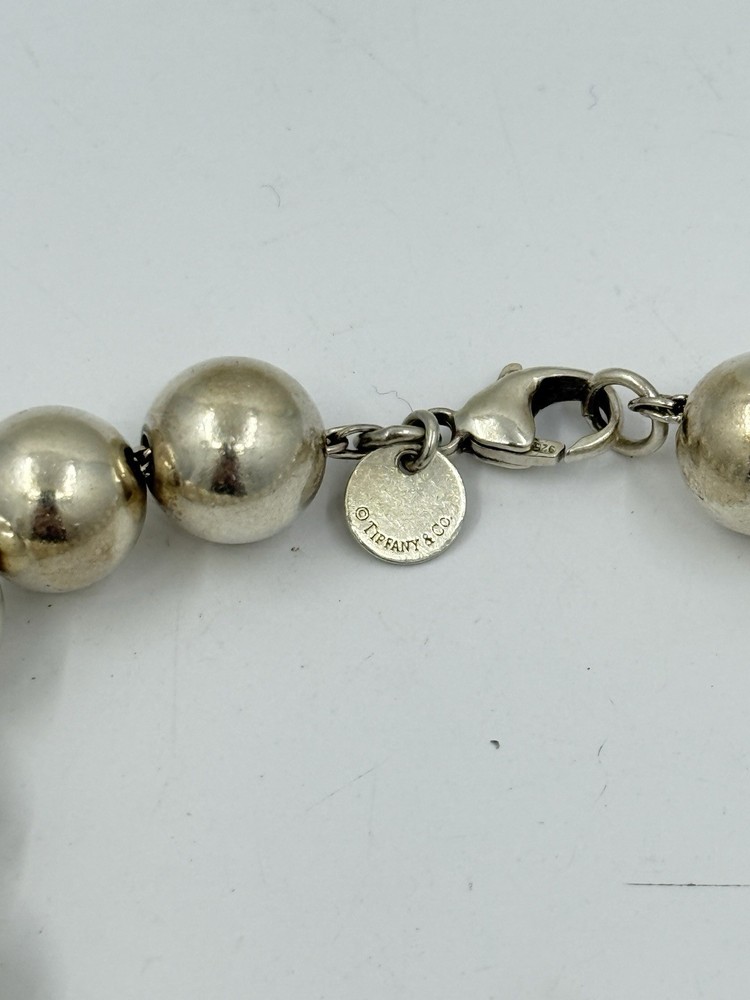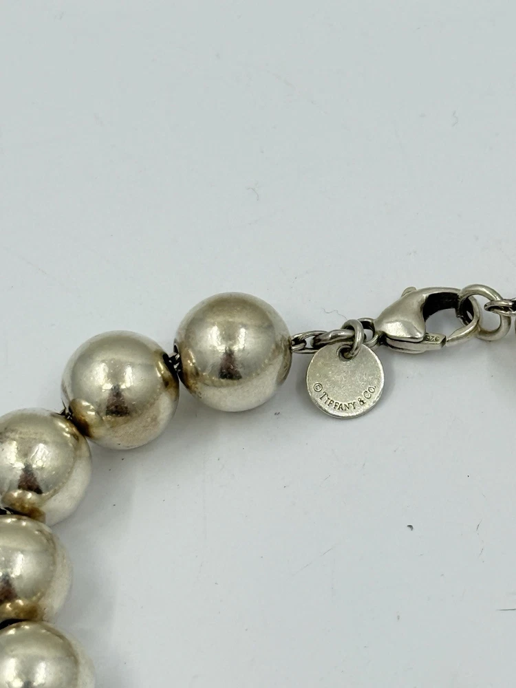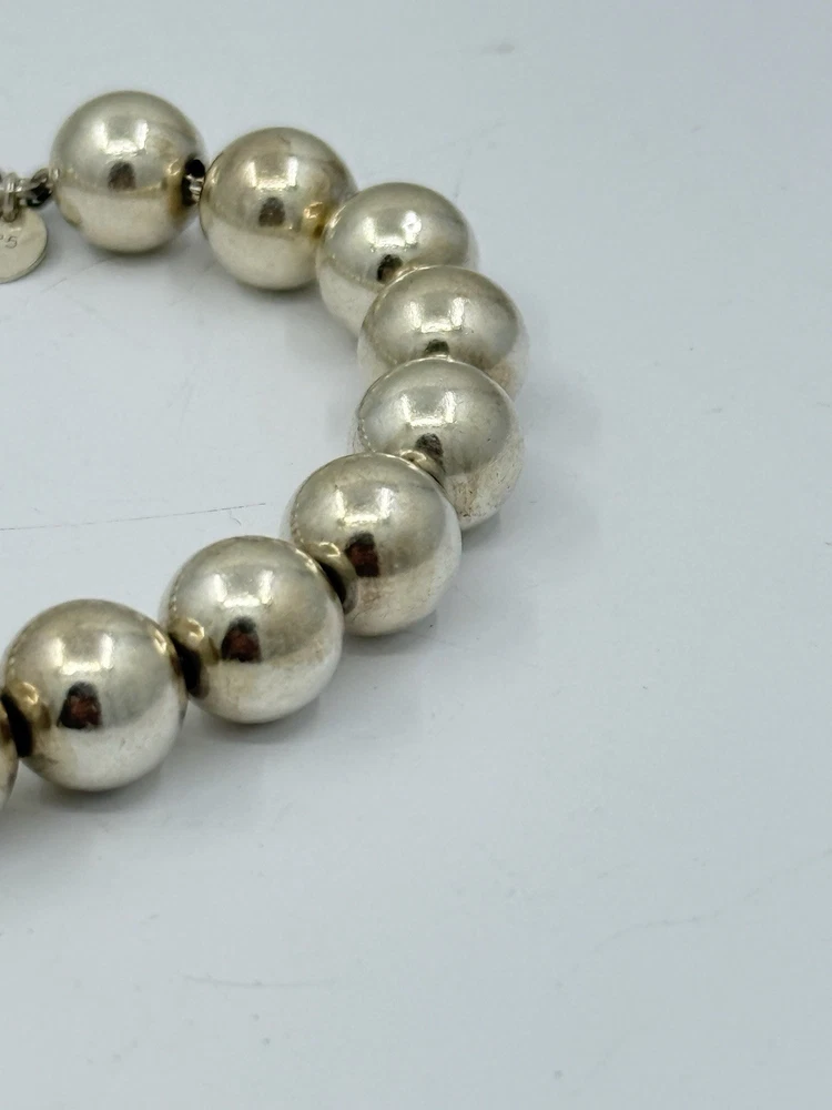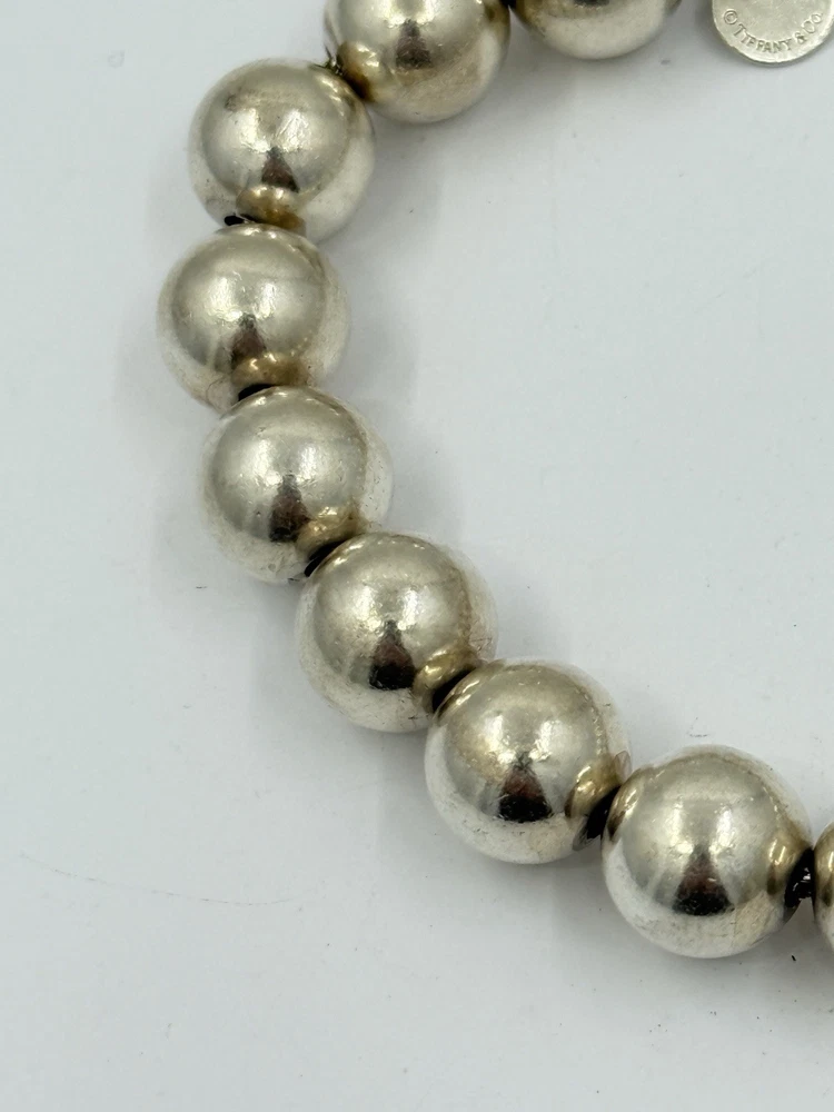 Authentic Tiffany & Co Sterling Silver Ball Bead Bracelet 18g 10mm It measures approximately 7.5” long and approximately 6-3/8” inside.