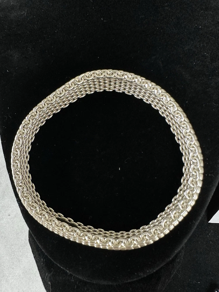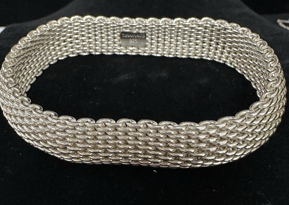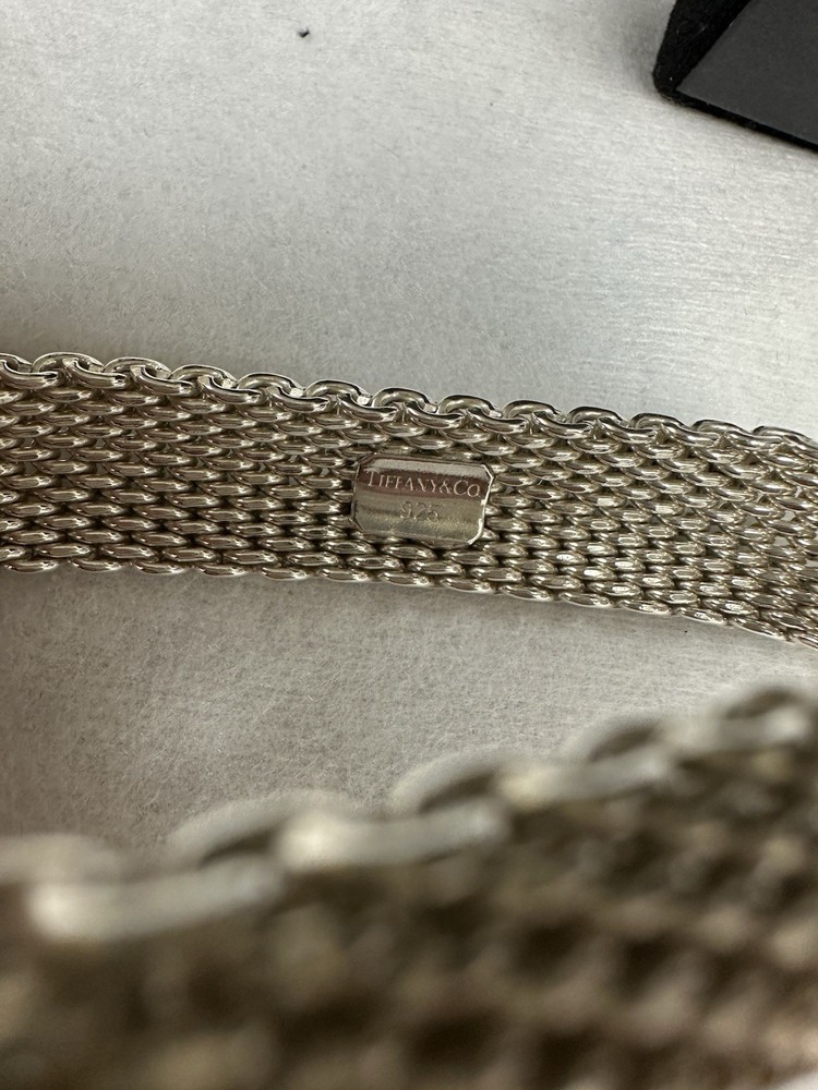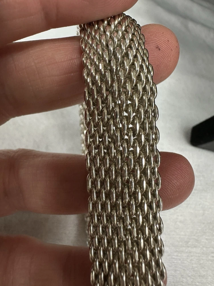 Absolutely stunning Tiffany bracelet! The Somerset mesh design is elegant and timeless, with a perfect 7.25" fit that sits beautifully on the wrist. The 15mm width gives it a delicate yet noticeable presence, and the sterling silver shines like new. No flaws at all—just pure luxury. A must-have for any jewelry lover!