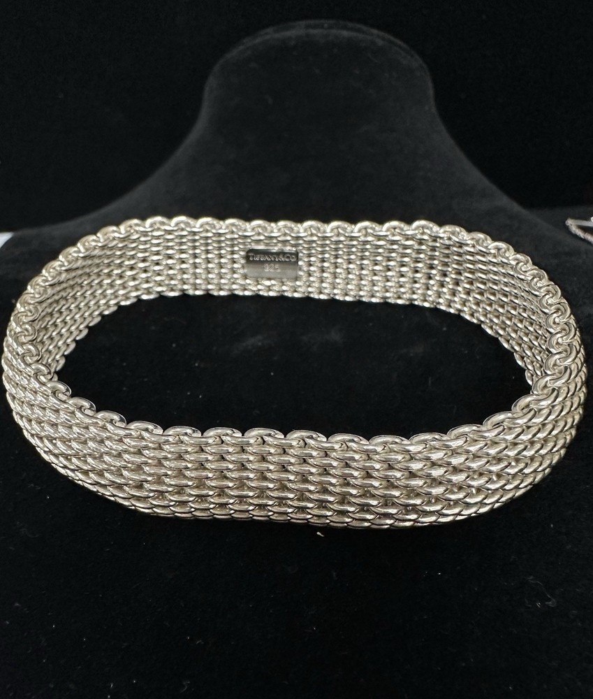 GORGEOUS TIFFANY & CO. STERLING SOMERSET MESH BRACELET IN EXCELLENT PREOWNED CONDITION. IT MEASURES APPROXIMATELY 7.25” ON THE INSIDE AND IS 15MM WIDE. I DON’T SEE ANY ISSUES WITH THIS PIECE. PLEASE VIEW ALL PHOTOS.