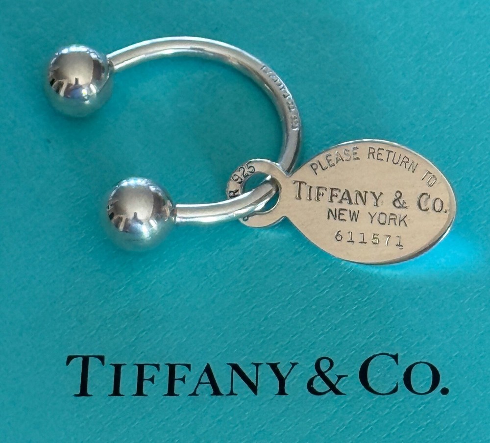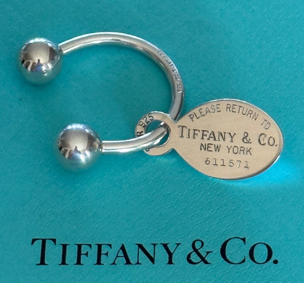 1. This adorable Tiffany keyring is a must-have! The sterling silver is stunning, and the classic "Please Return" engraving adds timeless charm. Perfect for gifting or treating yourself—it feels luxurious yet practical. Love the compact size, fits easily in pockets or bags. Even without the box, it’s clearly authentic and well-made. Absolutely worth it!