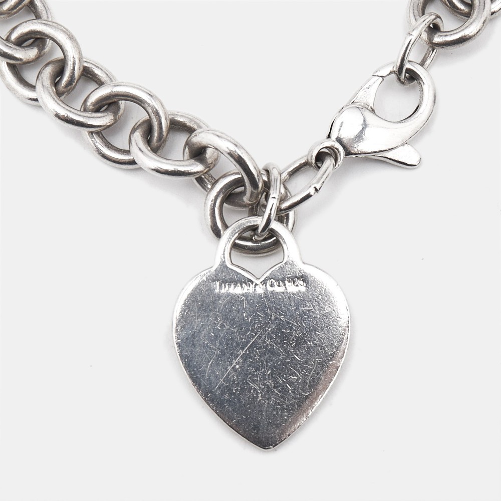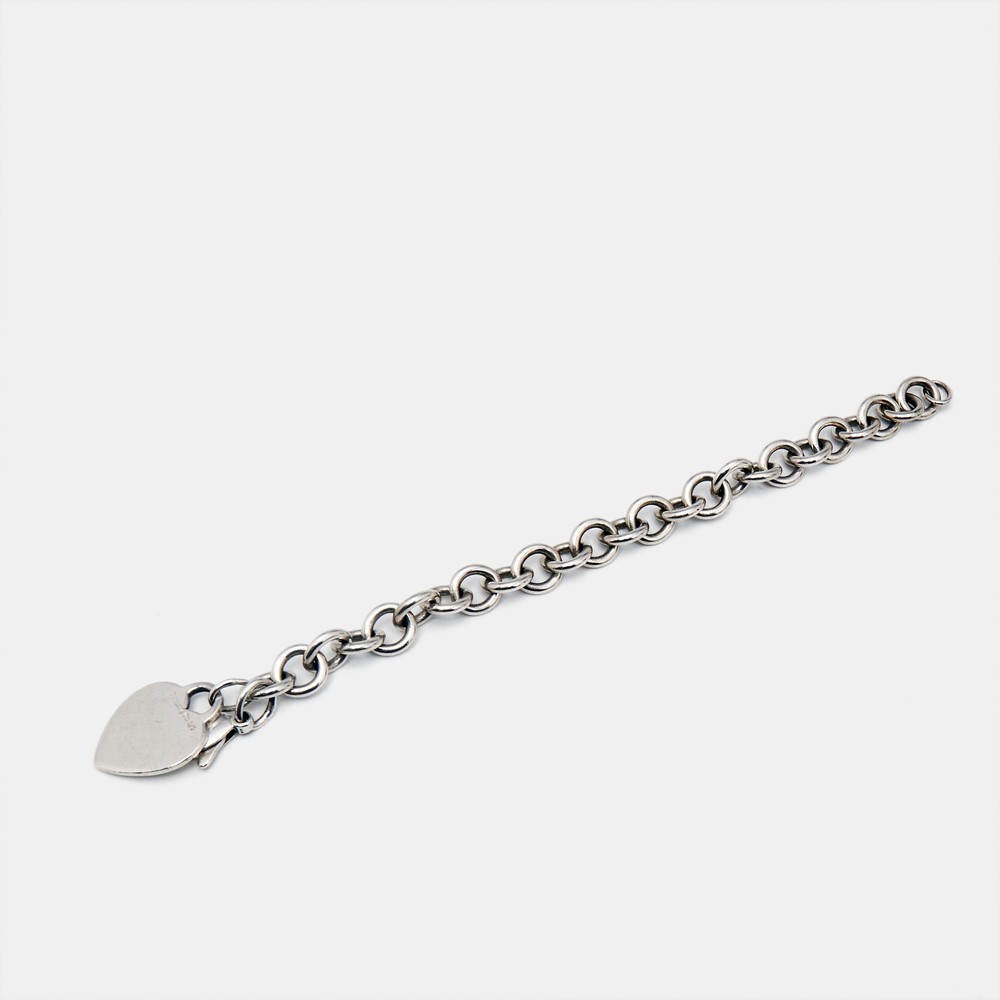 Tiffany and Co.s sterling silver bracelet features the iconic Heart Tag charm, a timeless emblem of love and identity. Stack it with other bangles or let it stand alone for impact.Certified by The Luxury Closet - This item has gone through a detailed authentication process overseen by our experts. We offer a lifetime guarantee of authenticity on all our items. Import duties, taxes and charges are not included in the item price. These charges are the buyers responsibility. Please check with your country’s customs office to determine what these additional cost will be prior to buying. Our eBay Store About Us Contact Us Add to Favorite Sellers Tiffany & Co. Heart Tag Sterling Silver Bracelet $325.6 Tiffany and Co.s sterling silver bracelet features the iconic Heart Tag charm, a timeless emblem of love and identity. Stack it with other bangles or let it stand alone for impact. Product Details Brand Color Silver Dimensions Material Size Outsole Width Outsole Length Heel Height Includes Certified by The Luxury Closet This item has gone through a detailed authentication process overseen by our experts. We offer a lifetime guarantee of authenticity on all our items. How We Check The in-house team of experts at The Luxury Closet is highly trained to verify the authenticity and the condition of the luxury products. They ensure that only 100% authentic items are put on sale.The evaluation process is unique with its own mix of assessment criteria and differs according to the category. Each item is evaluated based on the following combination of hallmarks, hardware, stitching, symmetry, material, craftsmanship, stamping, codes, hologram stickers, and packaging. Our authenticators also check if the items have been modified or amended (e.g., aftermarket diamonds, replaced batteries, repaired bags, etc.) International Buyers Import duties, taxes and charges are not included in the item price. These charges are the buyers responsibility. Please check with your country’s customs office to determine what these additional cost will be prior to buying.