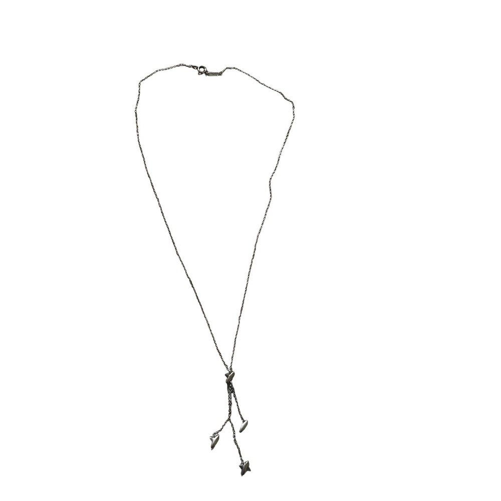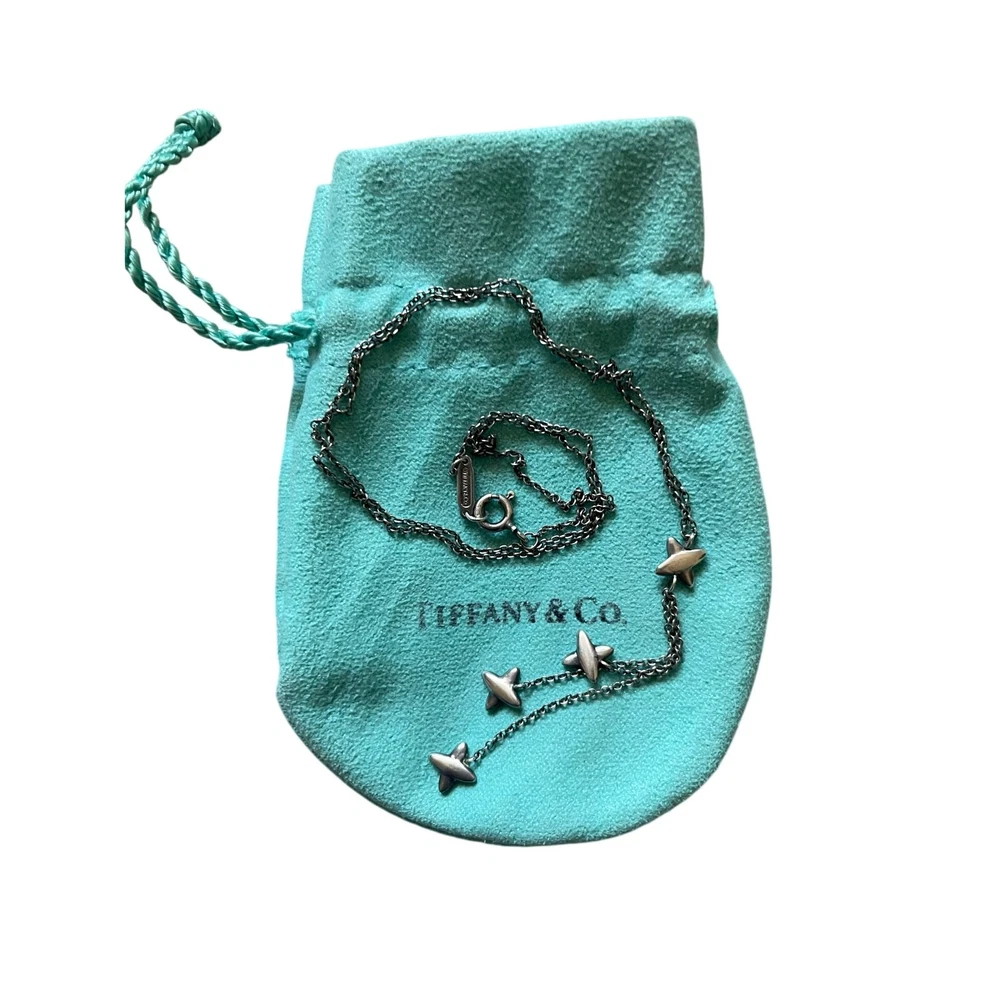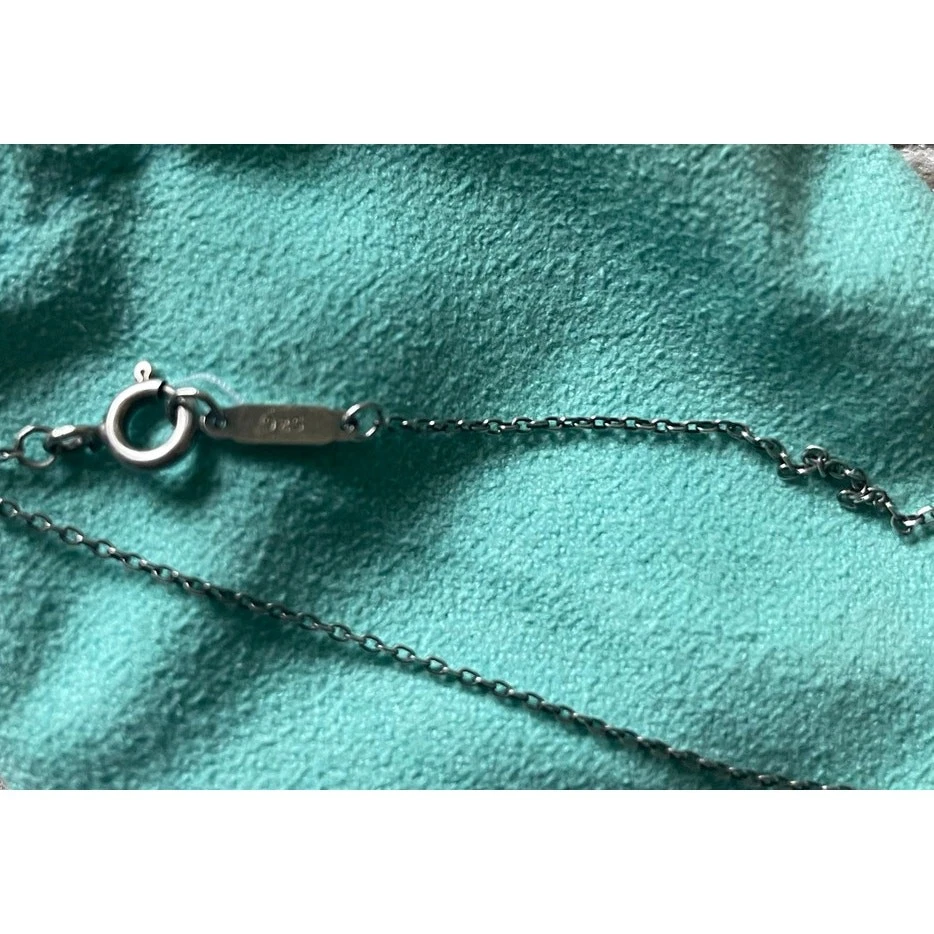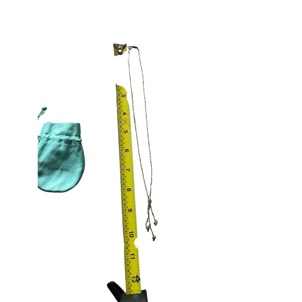 Tiffany & Co Sterling Silver with 4 X pendants Lariat Pendant Necklace with Blue Pouch Stamped with Tiffany and Co and 925 on pendant and clasp Good used condition with Tiffany jewelry bag Keywords: Tiffany & Co, Classic, Pendant necklace, Elegant, Feminine, Unisex, Timeless, Luxury, Tiffany Blue, Silver, Retro,