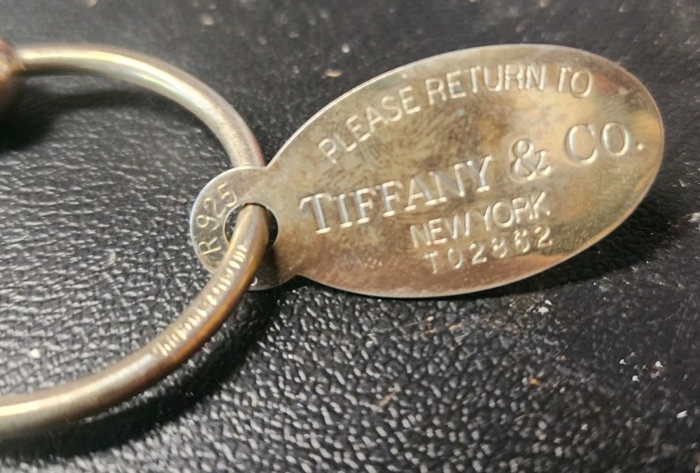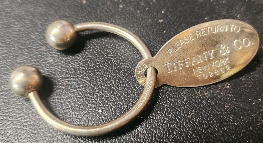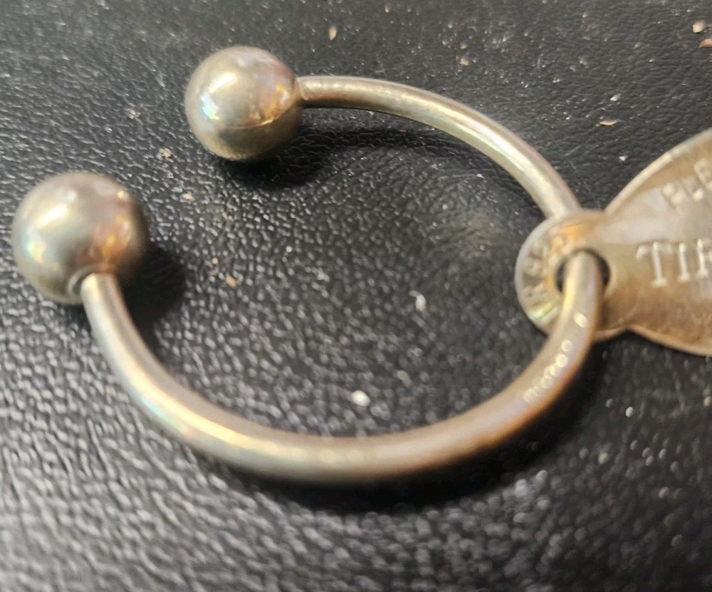 Older used tiffany key ring. One side of tag is engraved with name Don on it. I'm sure with it being sterling you could probably get rid of that if your name isnt don. See pics