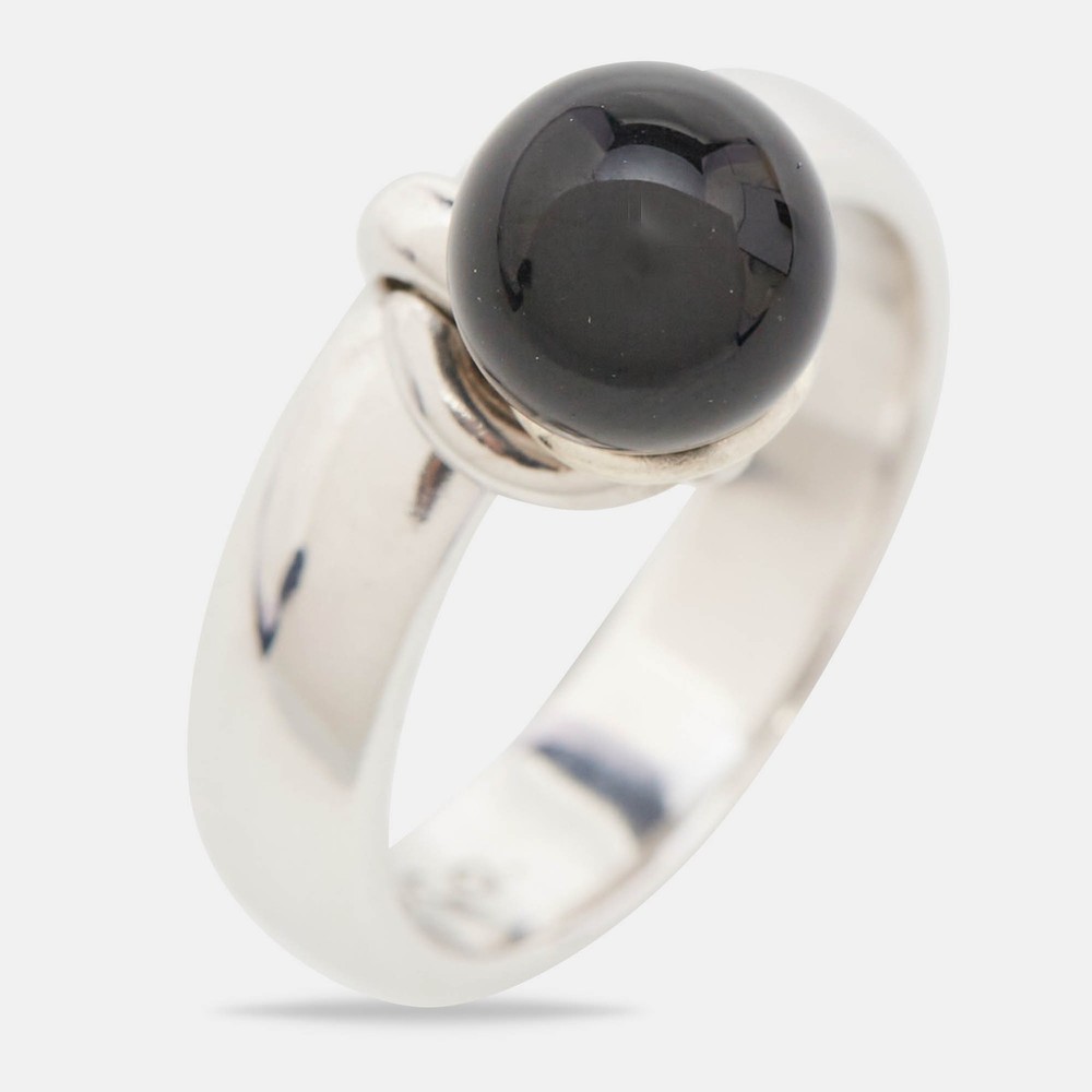To adorn your fingers in the most elegant way, Tiffany and Co. brings to you this stylish ring. It has been carved using top quality materials and will elevate your look instantly.Certified by The Luxury Closet - This item has gone through a detailed authentication process overseen by our experts. We offer a lifetime guarantee of authenticity on all our items. Import duties, taxes and charges are not included in the item price. These charges are the buyers responsibility. Please check with your country’s customs office to determine what these additional cost will be prior to buying. Our eBay Store About Us Contact Us Add to Favorite Sellers Tiffany & Co. Door Knocker Onyx Sterling Silver Ring Size 56 $405.9 To adorn your fingers in the most elegant way, Tiffany and Co. brings to you this stylish ring. It has been carved using top quality materials and will elevate your look instantly. Product Details Brand Color Silver Dimensions Width: 0.81 cm (Charm) Material Size 56 Outsole Width Outsole Length Heel Height Includes The Luxury Closet Packaging Certified by The Luxury Closet This item has gone through a detailed authentication process overseen by our experts. We offer a lifetime guarantee of authenticity on all our items. How We Check The in-house team of experts at The Luxury Closet is highly trained to verify the authenticity and the condition of the luxury products. They ensure that only 100% authentic items are put on sale.The evaluation process is unique with its own mix of assessment criteria and differs according to the category. Each item is evaluated based on the following combination of hallmarks, hardware, stitching, symmetry, material, craftsmanship, stamping, codes, hologram stickers, and packaging. Our authenticators also check if the items have been modified or amended (e.g., aftermarket diamonds, replaced batteries, repaired bags, etc.) International Buyers Import duties, taxes and charges are not included in the item price. These charges are the buyers responsibility. Please check with your country’s customs office to determine what these additional cost will be prior to buying.
