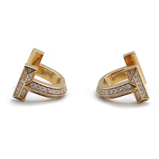 Tiffany & Co T-One 18K Pink Gold 0.28ct Pavé Diamond Huggie Earrings 61634
