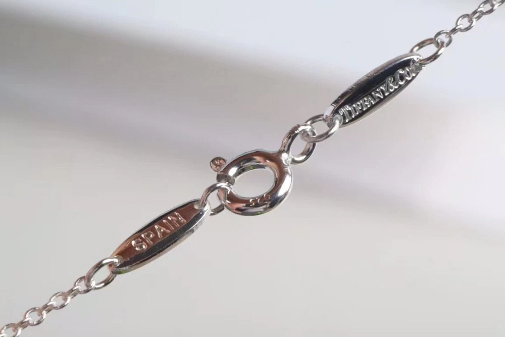 This beautiful Tiffany & Co. necklace is crafted from 925 sterling silver and features a heart-shaped pendant charm. The necklace is perfect for adding a touch of charm and elegance to any outfit. The pendant is designed with intricate details and is sure to catch the eye of anyone who sees it. The necklace is part of the Tiffany & Co. Hearts collection and is an excellent addition to any fine jewelry collection. The necklace is available in a variety of styles, including chain and pendant, and is perfect for any occasion. A staple piece for any Tiffany lover or a great gift idea. Length: 17 inch(45cm) Metal: 925 sterling silver A staple piece for any Tiffany lover or a great gift idea. In good condition. Comes with box and bag