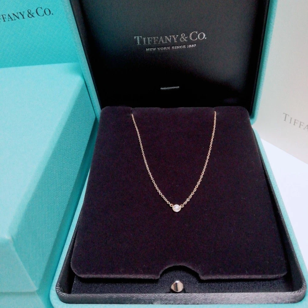 $ 512.8Tiffany Co Au750 YG 0.19CT Diamond By The Yard Necklace Pendant