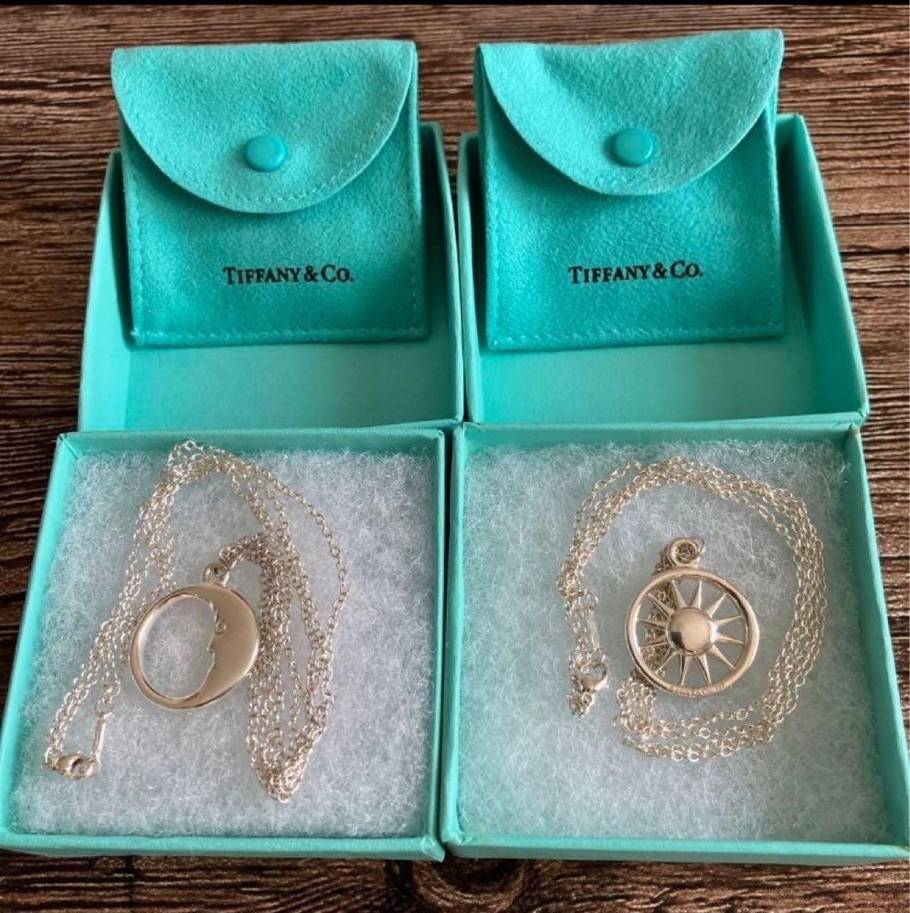 Tiffany Necklace 2 Set Exclusive Fine Jewelry Must-Have Collector’s Piece Rare Description Item Condition : Used Very Good! Storage box (some stains and light dirt) (see photo) Inner bag is clean. Cleaned at a Tiffany store. There are minor scratches on the pendant. No noticeable damage or breakage that would affect use. Product Name: TIFFANY & Co. Necklace (2 pieces) Sun motif Material: 925 Sterling Silver Weight: 13.7g Man in the Moon (Rare, discontinued) Material: 925 Sterling Silver Weight: Approximately 10.6g Shipping Handling Time: 6 business days We will ship your item on week day from Japan. Standard Shipping with tracking number by FedEX or DHL or Japan post. We will ships within 5 business days after receiving cleared payment. ?Business days are not include Saturday, Sunday and National holidays. Package We pack items carefully and send them from Japan prompthy. You should have no concern about shipment. International Buyers - Please Note: Customs and duties: For buyers in the United States: Import duties and taxes are included in the item price or shipping cost.Items shipped to the U.S. are sent under the Delivered Duty Paid (DDP) method, which means all import-related charges are prepaid.You don?t need to pay any additional fees when your order arrives. For buyers outside the United States: Import duties, taxes, and charges are not included in the item price or shipping cost.These charges are the buyer?s responsibility.Please check with your country?s customs office to determine what these additional costs will be before bidding or buying. Thank you for your understanding.