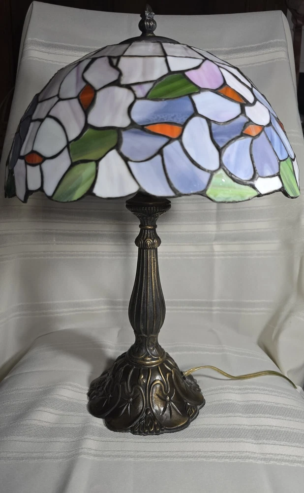Tiffany Style Lamp Pink & Purple Floral Flowers Stained Glass . Condition is Used. Shipped with USPS Ground Advantage.