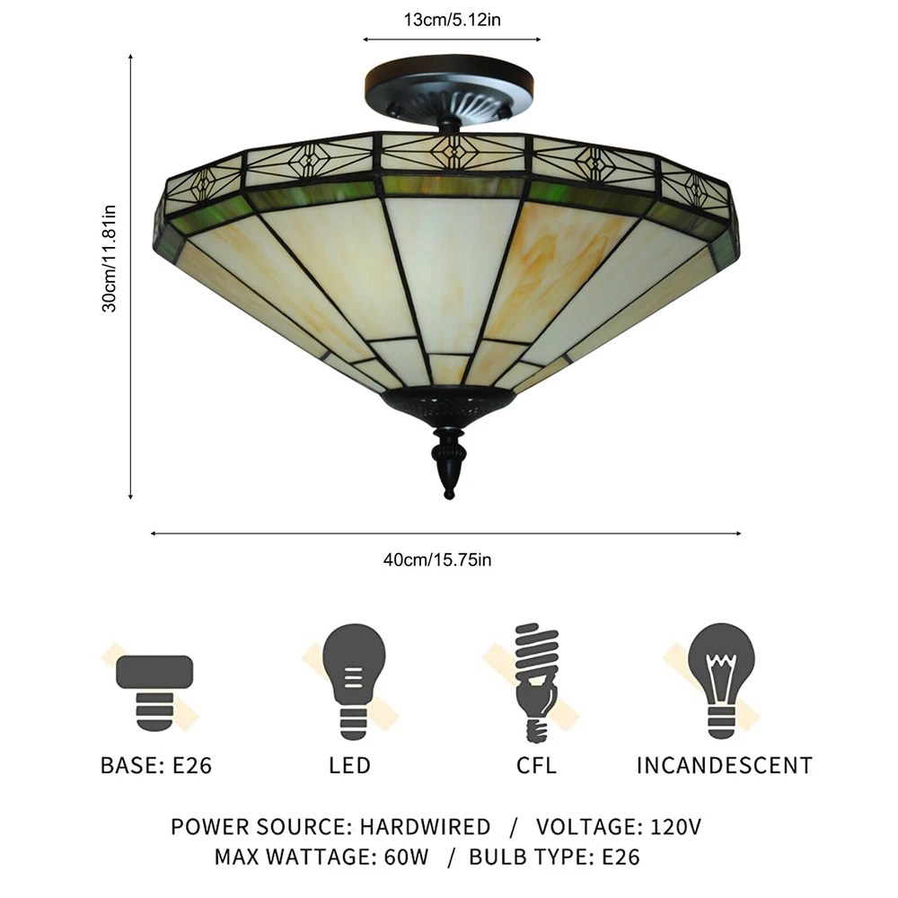 Tiffany Style Stained Glass Lamp Hanging Ceiling Chandelier Pendant Lighting Ceiling Light Tiffany Style Led Dimmable Chandelier Embedded Decor Lamp E26 Size: 13.75in Wide X 11.81in High.chandelier Canopy: 5.12in Wide. Real Tiffany Lamp: Handmade, Stained Glass Shade, All Welded Together by High Temperature, Plastic Can Not Withstand High Temperature Welding, the Weight of Glass Is 2-3 Times More than Plastic. Reliable Quality, Never Fade. 💡【Suitable for Various Occasions】This Tiffany Lamp Be a Retro & Fashionable Decor for Your House. Perfect for Kitchen, Dining Room, Hallway, Foyer, Entryway, Nursery, Entrance Way, Hallway, Bedrooms, Sink, Dining Table, Cafe, Restaurant, Study, Office, Warehouse, Club and Etc. 💡【2-Light & E26 Bulb Socket】This Kitchen Lights Ceiling Features 2 Heat-resistant Standard E26 Bulb Sockets (Max 60w, Bulb Not Included). Compatible Bulbs: Cfl, Halogen, Incandescent, or Led. Voltage: 110-120v, It Can Be Dimmable When You Used with a Dimmable Bulb and Compatible Dimmer Switch. Fits Room Size 22.96ft-49.2ft Easy Installation : All Mounting Hardware Required for Installation of Chandelier Are Included in the Package. Just Need to Follow the Illustrated Instructions of the Hanging Light Provided for Assembly and Installation! What You Get: 1 X Tiffany Light (Bulbs Not Included) 1 Xscrews Sets 1 Xinstruction Manual Tips: -Please Make Sure the Light Is Securely Supported and Is Disconnected from Power When Installing. -Installing the Light Bulbs Before Hanging the Makes the Installation Easier. ✔[Easy to Install] Open the Package and Check the Appearance of the Chandelier. Follow the Instructions to Group the Lights Together and Test Their Effects Before Installing Them on the Ceiling. in the Process of Assembling the Lamp, Please Pay Attention to Check the Position of Each Wire Interface and Tighten the Fixing Screws. Payment Delivery details Terms of sales About us Contact us Payment We accept ebay payment 。 Fees such as import duties, taxes are not included in the item price or shipping costs. These charges are the buyer's responsibility. Delivery details Shipping: 2-9 working days to: USA Terms of sales We maintain high standards of excellence and strive for hundred percent customer satisfaction. Feedback is very important to us. We hope that you contact us immediately before you give neutral or negative feedback, so that we can address your concerns. It is impossible to address issues if we do not know about them! About us Your satis faction is our ultimate goal. We work hard to earn your trust and future business. Our certified technicians have tested each item before shipping. The unit comes with 1 year limited warranty on all manufacturing defects. a) If you receive a defective item, you may return it or ask for a discount. Please contact us within 14 days after you receive the package. b) What you returned must be intact and in its original packaging as re? u. Customer is responsible for shipping costs of the returned item. c) We will cover the cost of shipping back t with the shipping rate indicated in the registration page. We will send you a new unit or refund the full payment you paid. Thank you. Contact us Business Hour Business Hour: Monday To Friday: 8:30 AM to 5:00 PM (Beijing China time) Due to time zones, our reply to your questions may not be immediately. But within above working time, we will reply your email within 24 hours. If it's non-workdays, please kindly be patient and wait till Monday. Please contact us with ebay message. Please feel free to contact us if you have any questions. Monday To Friday: 8:30 AM to 5:00 PM (Beijing China time) Due to time zones, our reply to your questions may not be immediately. But within above working time, we will reply your email within 24 hours. If it's non-workdays, please kindly be patient and wait till Monday. Please contact us with ebay message. Please feel free to contact us if you have any questions.