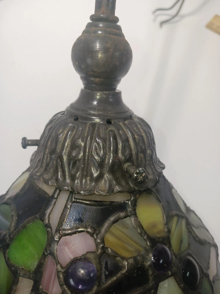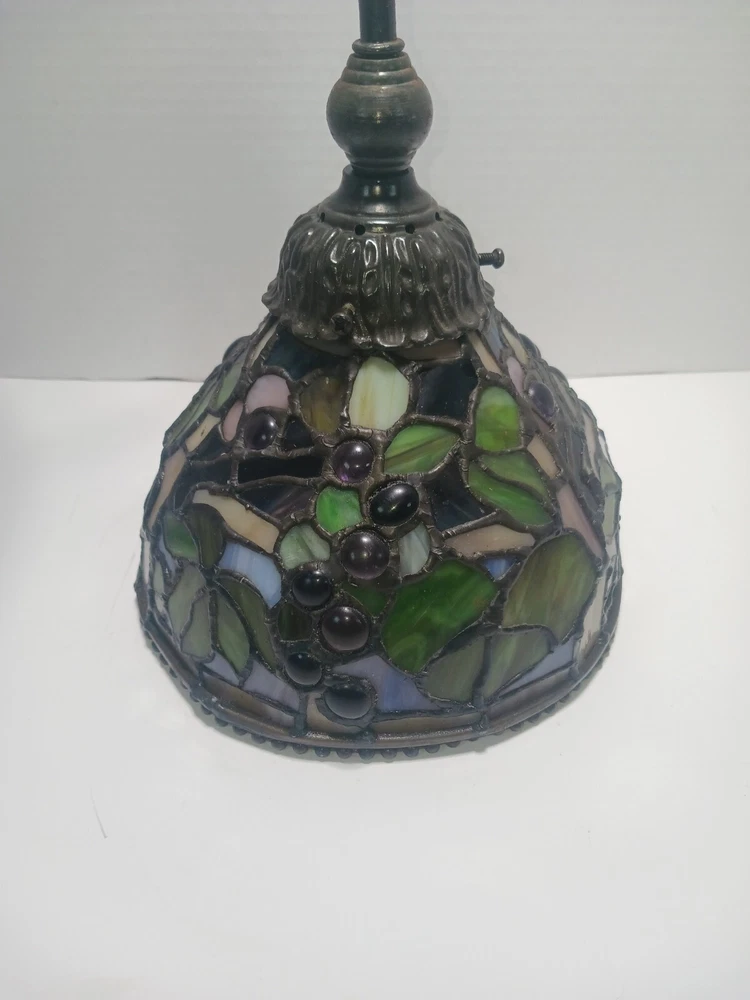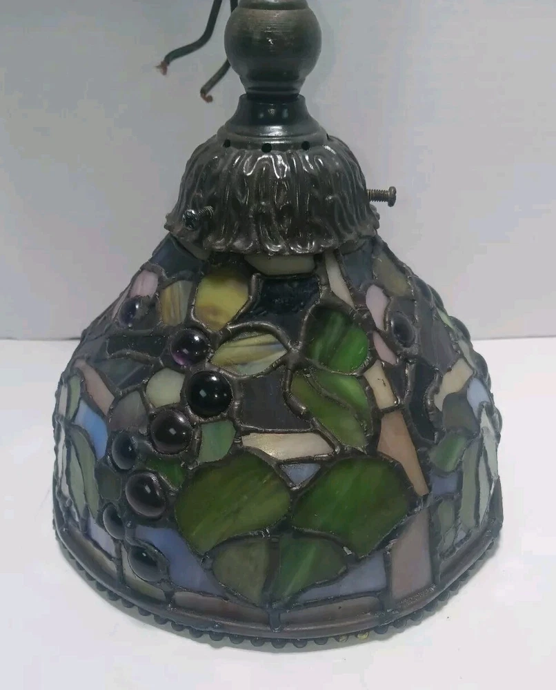 No plug..designed to be straight wired. Or you can install a plug. This stunning pendant light fixture is a must-have for any home. With its Tiffany-style stained glass design and jeweled finish, this ceiling lamp is sure to add a touch of elegance to any room. The light sensor and 8-inch diameter make it a functional and stylish addition to your home decor. Ideal for use in a dining room, living room, or bedroom, this pendant light fixture is crafted by the renowned brand Tiffany & Co. Its stunning design and high-quality materials ensure that it will last for years to come. Add a touch of luxury to your home with this beautiful stained glass pendant light.