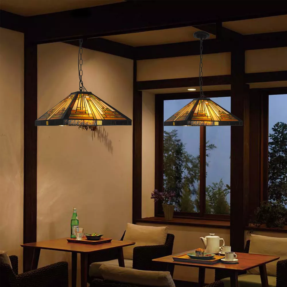 Tiffany Style Vintage Stained Glass Pendant Lamp Ceiling Fixture Hanging Light