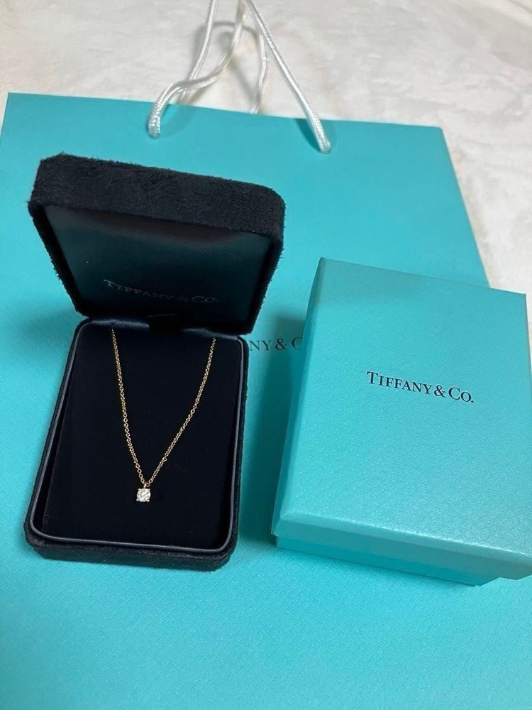 Tiffany solitaire diamond pendant necklace in sterling silver or gold