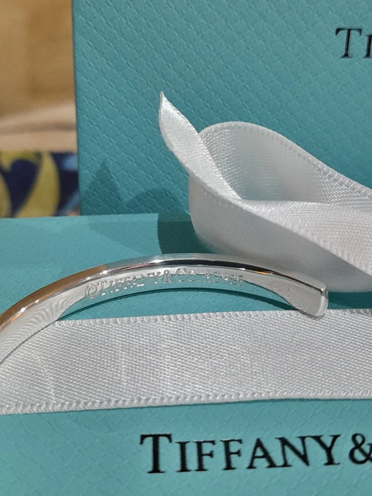 This brand new authentic Tiffany & Co. 1837 925 Sterling Silver Narrow Cuff Concave Open Bracelet is a stunning piece of the highest quality fine jewellery. Handmade in the United States, it features a concave shape and is engraved with Tiffany & Co. Ag 925, and is part of the Tiffany 1837 Makers collection. This stunning, elegant bracelet is crafted from solid 925 sterling silver with a width of 5mm and a total circumference of 19cm/7.5 inches, including the gap, size xl. The bracelet is hallmarked, signed, and comes with a certification engraved by Tiffany&Co. and hallmarked Ag 925. A versatile piece suitable for special occasions like engagements, anniversaries, birthdays, and Valentine's Day, it is a timeless addition to any jewellery collection πβ€οΈ Please see all the photographs of the actual item for sale as these form a part of this description and demonstrate all the details of this elegant bracelet, including its brand new condition, measurements, and weight. Perfect for gifting or treating yourself ππ Please note that this item currently retails at Β£505 on the current Tiffany&Co website (see final photograph), so this represents a real bargain π°β€οΈ Please note that this sale includes the Tiffany&Co black suede bracelet box, an outer box, a white ribbon, and a gift bag as photographed. Some of this packaging has been added to the original packaging to make this better for gifting. Hence, it is described as new without tags according to Ebay's descriptors π The sale also includes Royal Mail special delivery for tracking and insurance purposes. Once purchased, this beautiful bracelet will be carefully packaged and posted to you quickly, 1-2 working days, via Royal Mail special delivery π Thank you for looking π Please see my other listings for sale, which include many other stunning authentic Tiffany&Co. Items, both brand new and preloved, rare retired items ππ
