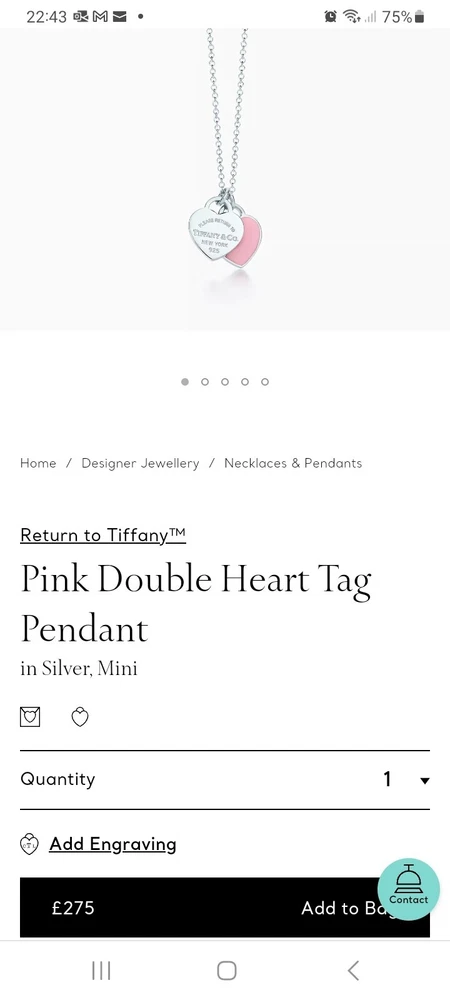 PLEASE NOTE: I will package and post this or any other Tiffany&Co. item listed for sale by Royal Mail special delivery quickly, 1-2 working days after purchase, so it will arrive on the following working day after postage around 1pm ππ This brand new beautiful authentic Return To Tiffany New York necklace from Tiffany & Co. features a charming double heart pendant in sterling silver and pink enamel. The oval link chain adds a touch of elegance to this piece, making it the perfect addition to any jewellery collection π©·π€ With a spring ring closure, this necklace is 18 inches in length and weighs 2.9 grams. It is hallmarked with the engraved with Tiffany & Co. 925 certification and is signed by the designer. Ideal for special occasions such as Christmas, anniversaries, birthdays, or Valentine's Day, this necklace is a true representation of beauty and love. Please see all the photographs of the item for sale as these form a part of this description, and demonstrate all the details, including engraved markings, length, adjustable 16"/18", and the weight of 2.9 grams. This brand new never worn Tiffany&Co. 925 necklace is perfect for gifting π π π β€οΈ The final photograph demonstrates the RRP Β£275 on the current Tiffany&Co website. Please note that the sale includes the Tiffany&Co. pouch, a box, a sterling silver polishing cloth, and a gift bag as photographed. It also includes free Royal Mail special delivery. A bargain at Β£175 π°β€οΈ Please note that although this item is brand new, it is described as new without tags because it does not include all of its original packaging. Some of the packaging has been added for gifting purposes π Ebay's descriptors state that if an item does not include all of its original packaging, it should be described as new without tags π Thank you for looking π Please see my other listings for sale as these include many other stunning authentic Tiffany&Co. items for sale, both brand new and preloved rare retired items π β€οΈ