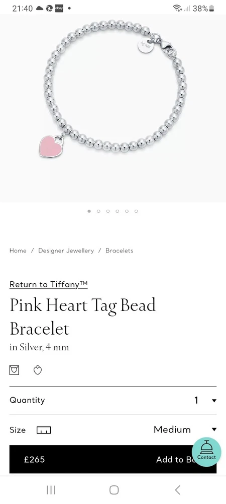 PLEASE NOTE: I will package and post this or any other Tiffany&Co. item listed for sale by Royal Mail special delivery on the next working day after purchase, so it will arrive on the following working day around 1pm (UK)ππ This beautiful, brand new, authentic Tiffany & Co. Return To Tiffany Red Heart tag pendant bracelet β€οΈ is a must-have for any jewellery lover. Crafted from 925 sterling silver, it features a charming red enamel/sterling silver heart tag pendant and a reversible design. The bracelet is 20 cm/8" in length (size Large) and has a 4mm ball/bead chain with a secure lobster closure β€οΈ Perfect for any occasion, this bracelet is ideal for Christmas, weddings, anniversaries, birthdays, or Valentine's Day. It is handmade and engraved with the Tiffany & Co. Return to Tiffany collection. The bracelet is signed and comes with an engraved Tiffany & Co. 925 certification. Add a touch of beauty and love to your outfit with this stunning piece of jewellery. Please see all the photographs of the item for sale as these form a part of this description and demonstrate all details, measurements and the weight of the bracelet. This bracelet weighs 7.34 grams. This bracelet is in brand new, never worn condition. RRP Β£265 on Tiffany&Co website. Perfect for gifting π β€οΈ Please note that this sale includes the Tiffany&Co dust pouch, box, a silver polishing cloth, and a gift bag as photographed. It also includes free Royal Mail special delivery π π Please note that the description brand new without tags is applicable because not all the packaging is the original packaging, so Ebay's descriptors describe this as new without tags π Once purchased, this item will be carefully packaged and posted to you quickly, 1 working day via Royal Mail special delivery π Please see my other listings for sale, which include many other beautiful authentic Tiffany&Co. items for sale, both brand new and preloved rare retired items ππ