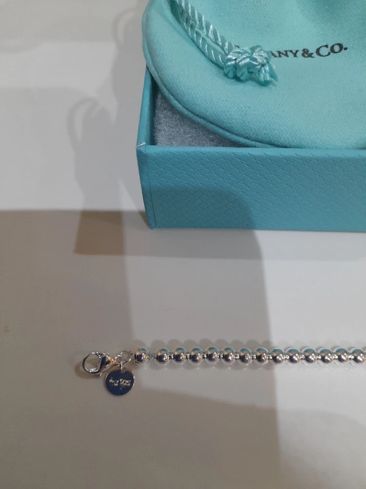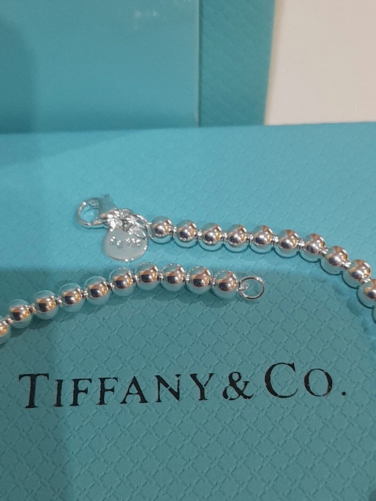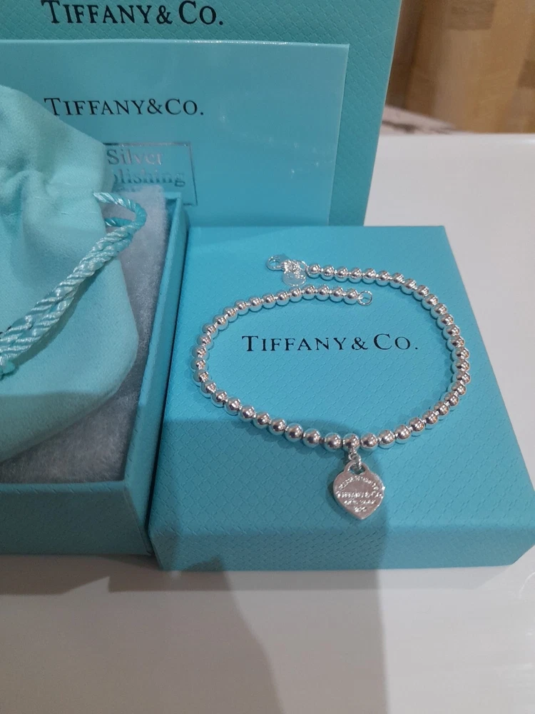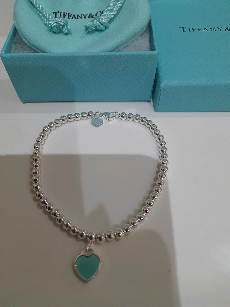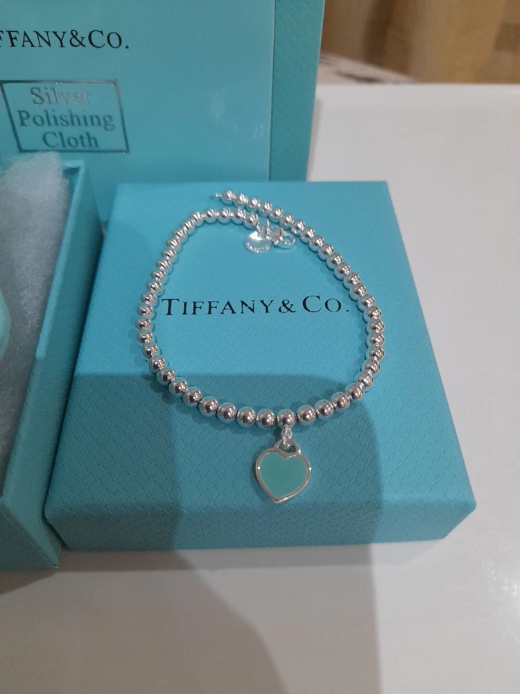 This beautiful, brand new, authentic Tiffany & Co. Return To Tiffany Tiffany Blue Heart tag pendant bracelet is a must-have for any Tiffany&Co. jewellery lover. Crafted from 925 sterling silver, it features a charming blue enamel/sterling silver heart tag pendant and a reversible design. The bracelet is 20 cm/8 inces in length/size large and has a 4mm ball/bead chain with a secure lobster closure π Perfect for any occasion, this bracelet is ideal for Christmas, weddings, anniversaries, birthdays, or Valentine's Day. It is handmade and engraved with the Tiffany & Co. Return to Tiffany collection. The bracelet is signed and comes with an engraved Tiffany & Co. 925 certification. Add a touch of beauty and love to your outfit with this stunning piece of jewellery. Please see all the photographs of the item for sale as these form a part of this description and demonstrate all details, measurements and the weight of the bracelet. This bracelet weighs 7.34 grams. This bracelet is in brand new, never worn condition. RRP Β£265 on Tiffany&Co website. Perfect for gifting π β€οΈ Please note that the description brand new without tags is applicable because not all the packaging is the original packaging, so Ebay's descriptors describe this as new without tags π Please refer to my Ebay selling feedback and comments, many of which are for my authentic Tiffany&Co. items, including this actual item listed for sale π Please note that this sale includes the Tiffany&Co dust pouch, a box, a silver polishing cloth, and a gift bag as photographed. It also includes free Royal Mail special delivery π Once purchased, this item will be carefully packaged and posted to you quickly, 1-2 working days via Royal Mail special delivery π Please see my other listings for sale, which include many other beautiful authentic Tiffany&Co. items for sale π π