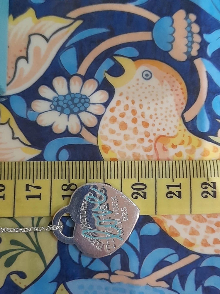 This brand new authentic Tiffany & Co. Return To Tiffany necklace features a heart-shaped pendant made of 925 sterling silver, with a Tiffany Blue "Love" graffiti design. The pendant is reversible and adjustable, hanging on a 45 cm/18" oval link chain that can be adjusted to 16". The necklace weighs 5.3 grams and is hallmarked as authentic Tiffany & Co. It is signed and comes with an engraved certification. This charming piece is ideal for occasions like Mother's Day, anniversaries, birthdays, and Valentine's Day, making it a perfect gift for a loved one. Please see all the photographs of the actual item for sale as these form a part of this description and demonstrate all the details of this beautiful necklace, including it's brand new condition, its measurements, Tiffany and Co. markings, 925 hallmarking, and weight of 5.3 grams. The heart tag pendant measurements are: Length: 25 mm Width: 25 mm Please note that this item is no longer available on the current Tiffany&Co. website, making it a rare and beautiful find π Perfect for gifting π This sale includes the Tiffany&Co. pouch, a box, and a gift bag π PLEASE NOTE: Some of this packaging has been added to the original packaging to make this better for gifting. Hence, it is described as new without tags according to Ebay's descriptors π The sale also includes Royal Mail special delivery for tracking and insurance purposes π On purchase, this necklace will be carefully packaged together with the Tiffany accessories and posted quickly to you, 1-2 working days via Royal Mail special delivery. You should expect to receive the necklace on the following working day after postage by around 1pm π Thank you for looking π Please see my other listings for sale as these include many other stunning authentic Tiffany&Co. Items, both brand new items currently available on the Tiffany&Co website, brand new items retired from the current Tiffany&Co website, such as this necklace, making it a rare find, and other preloved retired rare items for sale ππ
