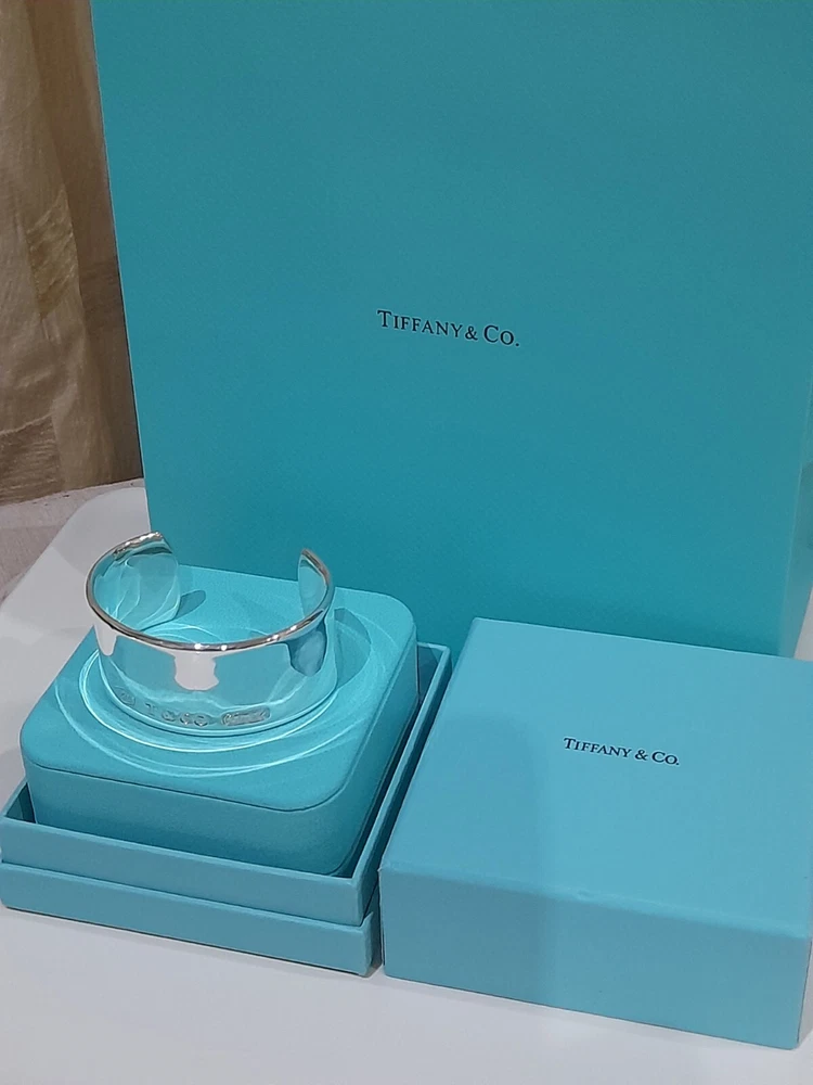 PLEASE NOTE: I will package and post this item or any other Tiffany&Co. item listed for sale quickly 1-2 working days after purchase by Royal Mail special delivery, so it will arrive on the following working day after postage around 1pm (UK) ππ Crafted by the highly esteemed Tiffany & Co., this solid sterling silver 925 extra wide cuff bracelet is an exquisite piece from the Tiffany 1837 collection β€οΈ With a total circumference of 7 3/8 inches, size large, it showcases a sophisticated oval shape and a concave design, giving it a modern yet timeless appeal. The bracelet's width measures 30mm, the bracelet's gap measures 1 and 5/8 inches, and the width across the bracelet is approx 2 and 5/8 inches. Fits wrists approximately 6.5 - 7 inches circumference.. The bracelet weighs 83.3 grams, showcasing its substantial feel without the embellishment of stones. The bracelet is finished in a lustrous silver hue, complemented by an engraved 925 hallmark, confirming its excellent quality. Its aesthetic is elevated by the iconic Tiffany & Co. branding, making it an inspirational and loving piece. Handmade in the United States, this bracelet is a perfect choice for various special occasions, including Christmas, anniversaries, birthdays, and Valentine's Day, or as a very thoughtful gift for any special occasion for someone special ππβ€οΈ Please see all the photographs of the actual item for sale as these form a part of this description and demonstrate all the details of this stunning authentic Tiffany&Co. Bracelet, including measurements, markings, 925 hallmarking, weight of 83.3 grams, and its excellent preloved condition π Perfect for a very special gift, or for treating yourself to something truly stunning ππβ€οΈ This iconic extra wide open cuff bracelet is part of the iconic Tiffany&Co 1837 range. Brand new, this item retails at Β£1325 on the Tiffany&Co website (see last photograph), so this sale represents an absolute bargain π°β€οΈ Please note that this sale includes the Tiffany&Co blue leather bracelet box, an outer box, and a gift bag as photographed πππ PLEASE NOTE : Some of this packaging has been added to the original packaging to make this better for gifting. Hence, it is described as new without tags according to Ebay's descriptors π This sale also includes Royal Mail special delivery, which includes insurance and tracking π Once purchased, this beautiful bracelet will be carefully packaged together with the Tiffany&Co packaging and posted quickly to you 1-2 working days π Thank you for looking π π β€οΈ Please also see my other listings for sale as these include many other stunning authentic Tiffany&Co. items for sale, both brand new, preloved, and rare retired items for sale ππβ€οΈ