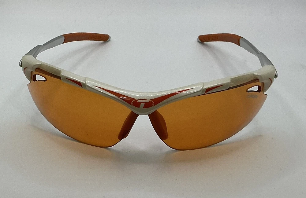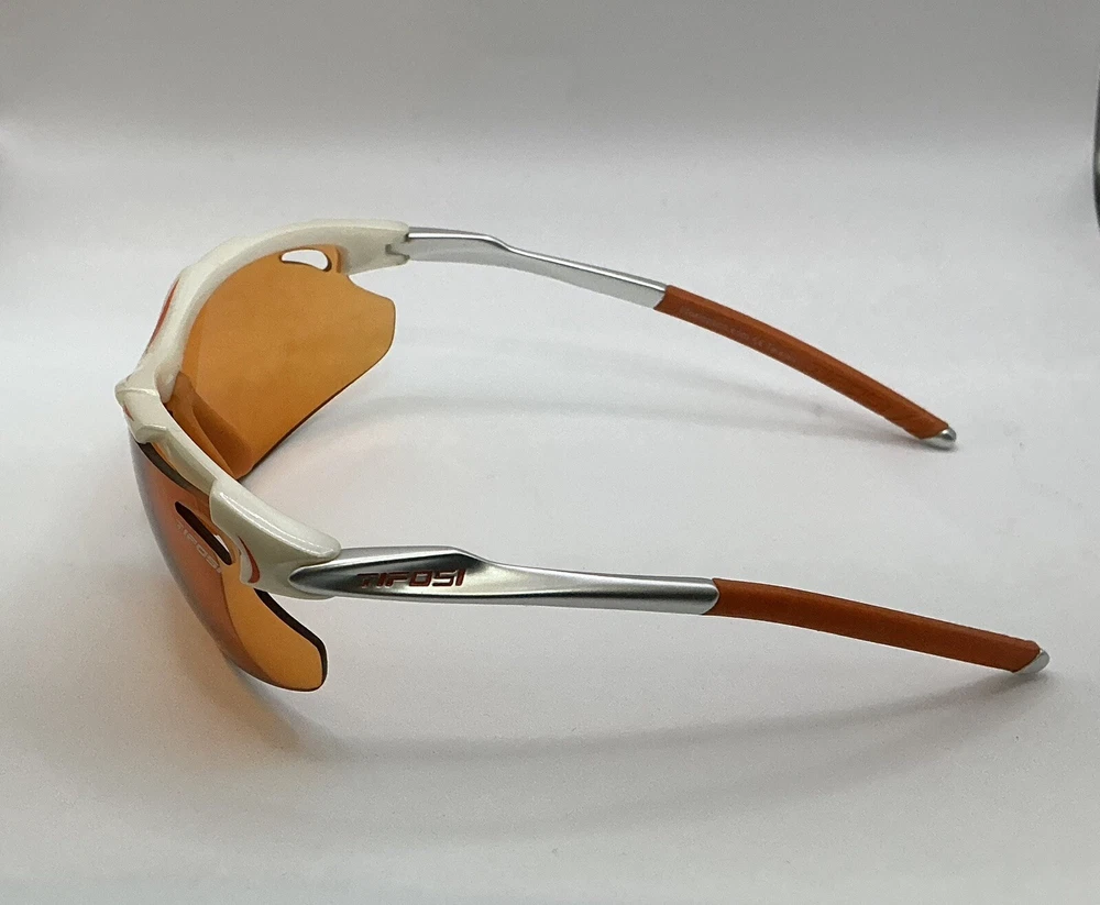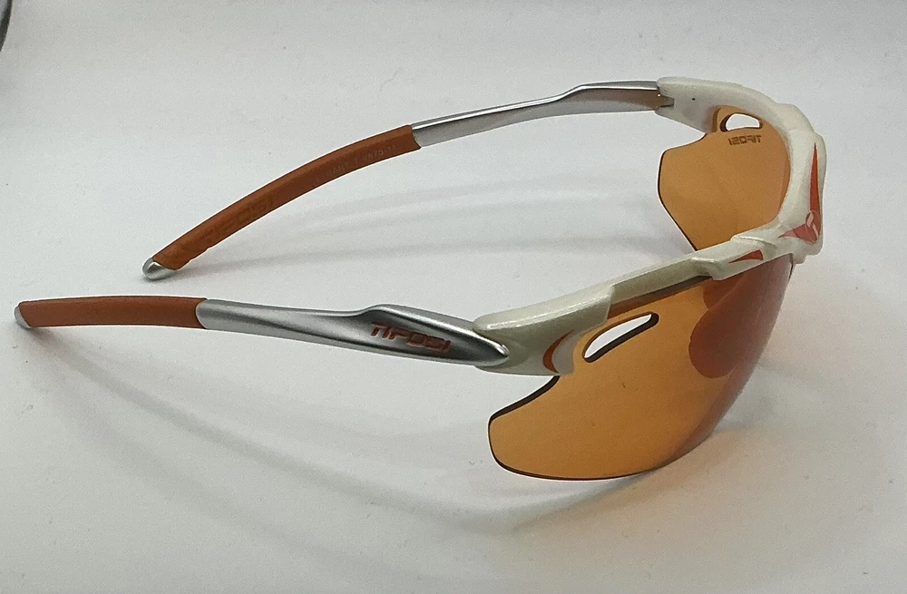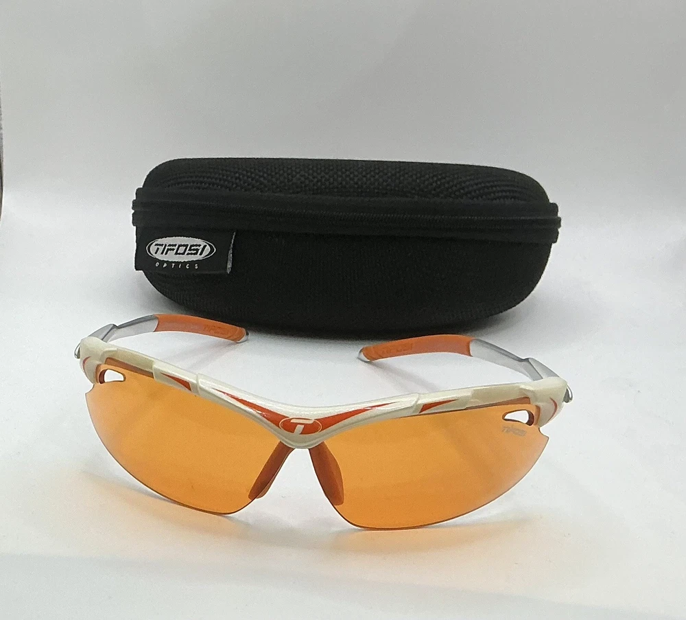 Tifosi Optics Tyrant T-V675-11 Sunglasses Orange, White, Silver & Lightweight Frames Polycarbonate Orange Lenses vented to stay cool & fog-free UVA UVB UV Rays protection Black Hardshell Case baseball, cricket, cycling, fishing, golf, hiking, Running, tennis, pickleball Great for UT longhorns fans Experience the ultimate in outdoor performance with the Tifosi Optics Tyrant T-V675-11 Sunglasses. Designed for the active individual, these sunglasses feature lightweight, polycarbonate lenses that deliver exceptional clarity and are vented to stay cool and fog-free, even in extreme conditions. The striking ivory orange silver frame is constructed from a durable mix of rubber, metal, and plastic, ensuring a comfortable fit and long-lasting use. These unisex sunglasses offer 100% UVA, UVB, and UV Rays protection, making them a essential accessory for any outdoor activity. The wrap style design provides a broad field of vision, while the orange lenses enhance contrast and color perception. The Tyrant T-V675-II model comes complete with a protective case, making it easy to store and transport your sunglasses wherever you go.