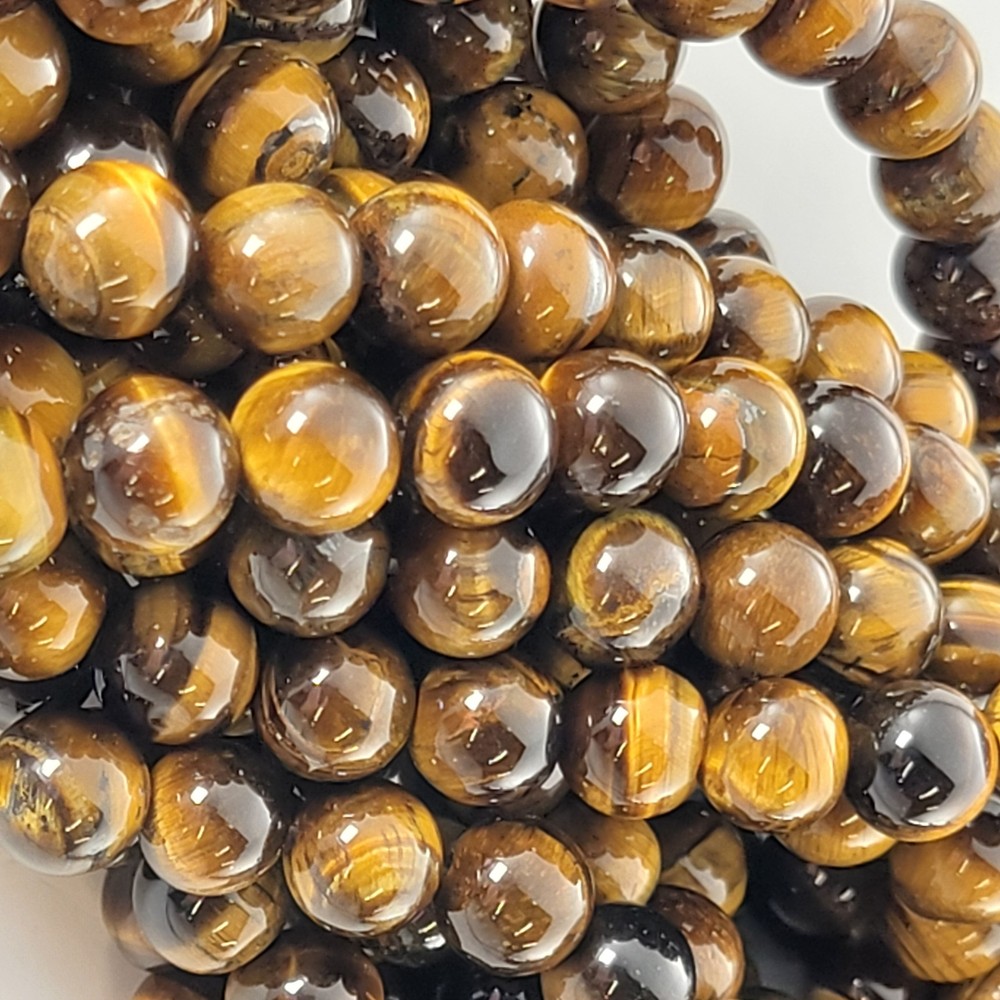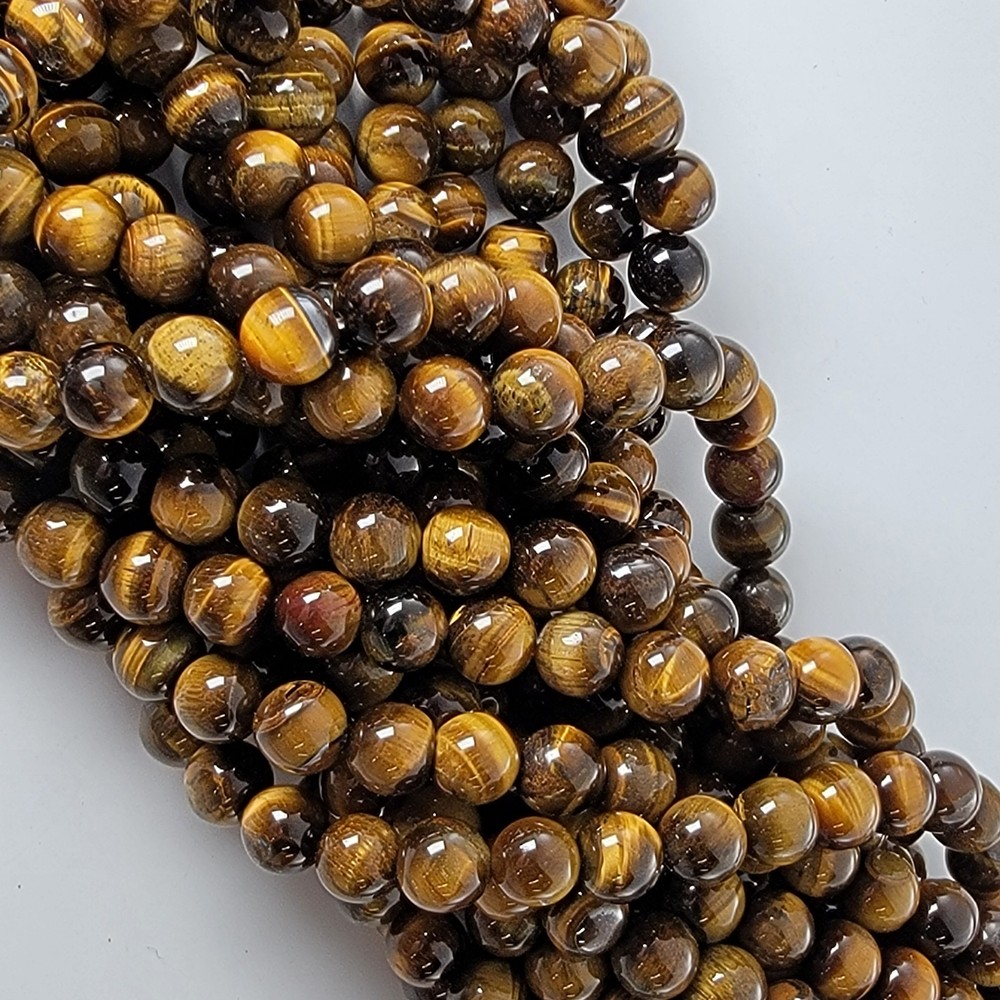 Tiger's Eye natural stone beads, 6mm/8mm/10mm. MOHS hardness: 7 Stone of Courage. Roman soldiers wore engraved Tiger's eye to protect them in battle. Some say it enhances personal empowerment and inner strength. Said to act as a shield, deflecting negative energies and promoting mental clarity and focus. My goal is to consistently provide the best beads available. You'll always receive excellent quality beads from me and I will never lie to you about their grade. Our photos are taken in-house so you'll always see what you're getting. Details: - Strand length: approximately 15" - Price is per strand. - Bead sizes are approximate and may have a variation of +/- 0.5mm. - Drill hole sizes on MOST beads - 4mm beads: about 0.5mm; 6-8mm beads: about 0.7-0.8mm; 10-12mm beads: about 0.8-1.0mm - Drill hole sizes are approximate and may have a variation of +/- 0.2mm. - All natural gemstones vary in color and pattern. We take our photos in-house so you can see the actual product we carry, but there is some variance between batches. - We generally ship Mon-Fri (except holidays) and try to ship same-day when your order is received before 2pm CST. *Number of beads per 15" strand* Our beads are sold by the strand, not the number of beads. Please use the following chart for reference only for smooth, round beads. 4mm dia - about 90pcs/strand 6mm dia - about 60pcs/strand 8mm dia - about 46pcs/strand 10mm dia - about 39pcs/strand 12mm dia - about 33pcs/strand Return Policy Satisfaction guaranteed with our 14-day return policy. Buyer is responsible for all shipping costs. Returned product must be in salable condition and all beads must be on the original strand.