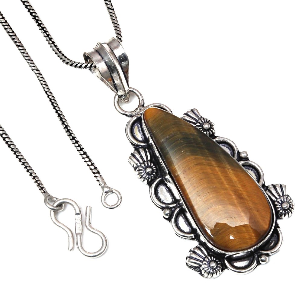 This stunning tiger's eye pendant is a must-have! The craftsmanship is exquisite, with a beautiful 925 silver finish that adds elegance. The natural gemstone shines brilliantly, making it a perfect gift for Valentine's Day or any special occasion. Lightweight yet durable, it’s a versatile piece that complements any outfit. Highly recommended for its quality and charm!