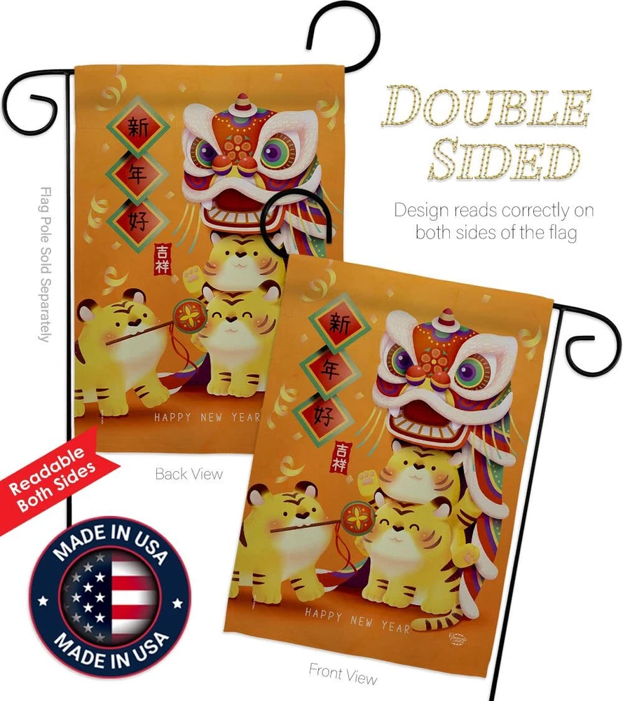 Tigers Year Garden Flag Set with Stand New Lunar Good Luck Prosperous Seasona...