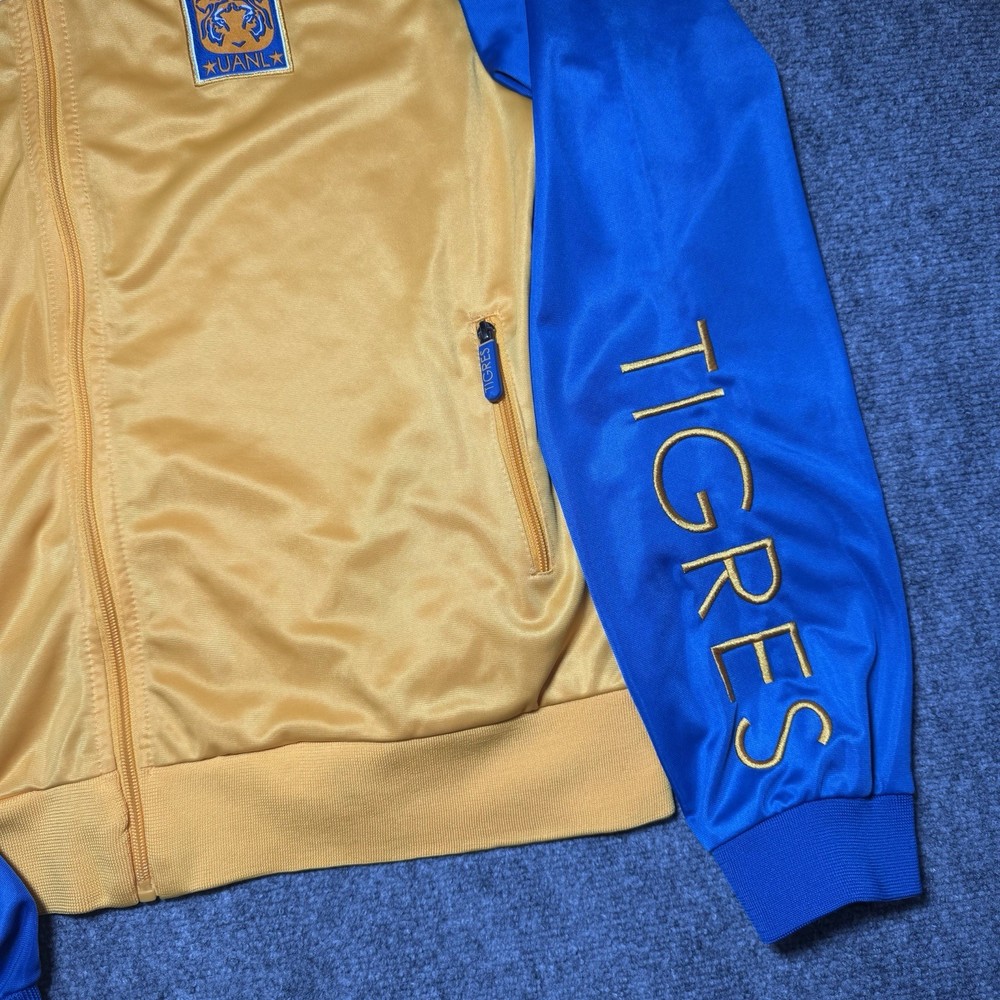 Tigres UANL Soccer Sweater Quarter 1/4 Zip 'TIGRES' Spellout Size XL Blue Yellow Sweater is in excellent condition as shown in pictures, size is also shown in pictures. Feel free to ask any questions about this item, all of our items come from a smoke free environment.