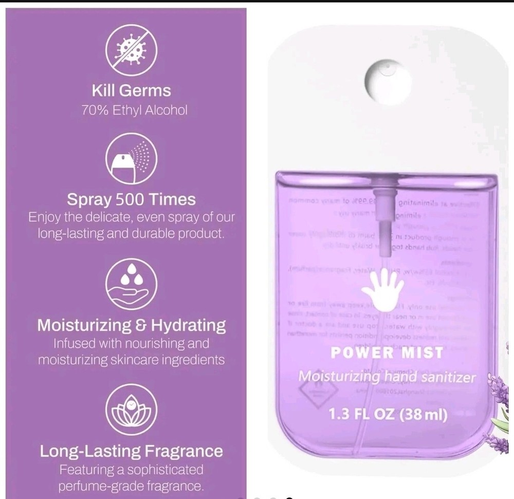 TIKTOK VIRAL SANITIZER MIST 70% OFF. [Moisturising aromatic formula]: This hand sanitizer spray There won't bestrong alcohol smells and sticky hand sanitisers; each spray has a refreshing fragrance and functional ingredients to provide pleasant and effective protection for your daily life [Different Flavors to Choose From]: Contains 7 flavors Tea, lavender, odorlessmint and others; Each travel-size spray provides 500 handrehydration and hygiene sprays [Portable and Compact]: Power mist hand sanitizer that can be carried anywhere and used easily. This 1.3fl.oz. (38 ml) sanitizer fits perfectly in your purse or pocket. [How To Use]: Spray appropriate amount of this product on the , cover the Hands and rub; The mist is ideal for use before meals, on transportation, in public restrooms and when handling Aloe,Tangerine,Tea,Vanilla,Peppermint,and Mint,Let you enjoy a pleasant experience [Spray Hand Sanitizer]: Spray hand sanitizer travel size, say goodbye to overbearing smell, thick ; Each layer of mist contains -boosting fragrances and functional ingredients that bring you pleasure and effective daily.