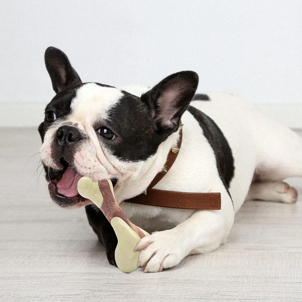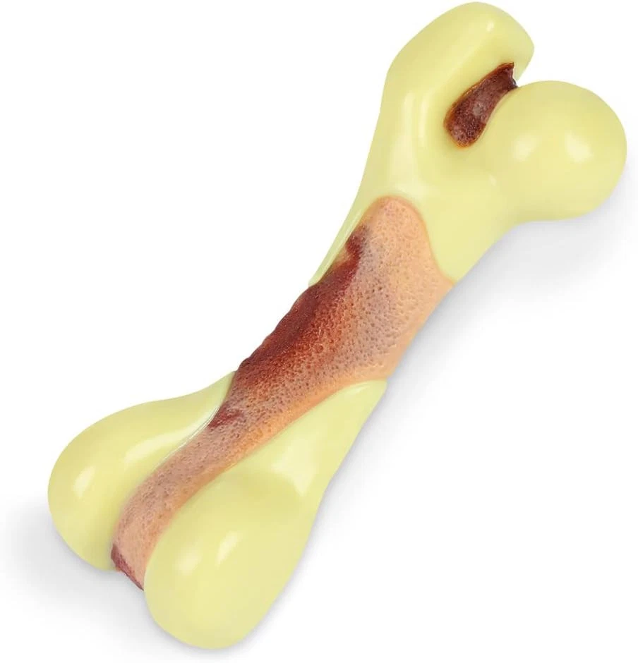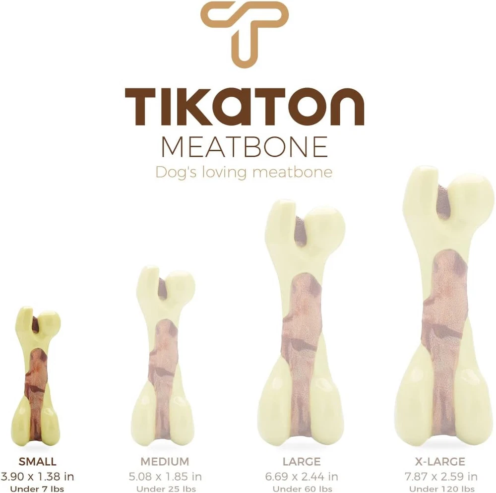 Tikaton Dog Chew Toys for Aggressive Chewers, Peanut Small, Yellow, Brown Product Details Item Weight: 2.25 ounces Manufacturer: Tikaton Item Package Dimensions L x W x H: 4 x 1.5 x 1.25 inches Item Weight: 0.06 Kilograms Brand Name: Tikaton Target Audience Keyword: Dogs Color: Yellow, Brown Size: Small Material: Nylon Style: Durable Breed Recommendation: Small Package Dimensions : 4 x 1.5 x 1.25 inches; 2.26 ounces Manufacturer : Tikaton Nylon dog toy provides safer alternative to real sticks, satisfies the natural urge to chew. Real-looking bone shape makes it easy for you pet to recognize, creats positive association with toys for dogs and reduces their anxiety and boredom. Built to withstand hours of playtime, safe non-toxic, tough and durable. Features a tempting beef scent to peak your dog's interest and deliver chewing satisfaction. Your dog must love it ! Durable dog chew toys for dogs up to 7 pounds.