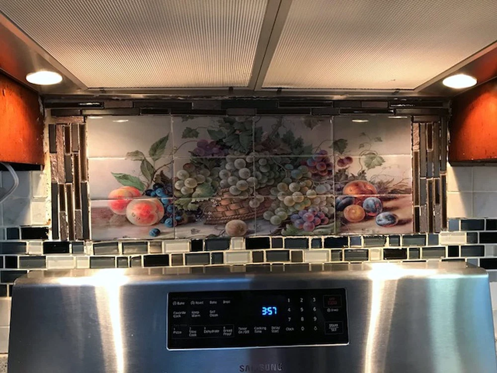 About Tile Mural Hub: Since 2003 has helped customers worldwide to decorate their homes, apartments and offices. Using the latest in sublimating technology, we can transfer artworks onto stone, marble or ceramic tiles to create gorgeous murals suitable for kitchen backsplashes, bathrooms, fireplaces and bar lounges. We use regular tiles from Lowe's store. All murals are durable enough to stand up to most household cleaning chemicals. Our line of images gives you an idea of what is available, but you need set no limitation on your wishes. We make custom! Just send us any digital image that you can find. All images can be altered to meet your request. Keywords: ceramic accent tiling patterns pattern design art decoration decor interior project picture marble stone images decorative artwork photo gallery back splash shower murals painted scenes Tile Mural Kitchen Bathroom Wall Backsplash Behind Stove Range Sink Splashback About Combined Shipping: If multiple purchases are made an excess amount will be sent to the buyer for any over-payment. Tile Mural; 4x3=12 Tiles; Tile Type: Ceramic, 6x6 inch; w/ Satin Matte Finish; Overall Dimensions: 24"w X 18"h; Perfectly Suitable for Kitchen Backsplash, Behind a Stove, in Shower or Spa, or Other Interior Space; Individually Handcrafted and Made With Highest Quality Materials and Workmanship; Fusion Imaging Process imbeds Artwork Deep Into Tile Surface; Waterproof, Fade Resistant;