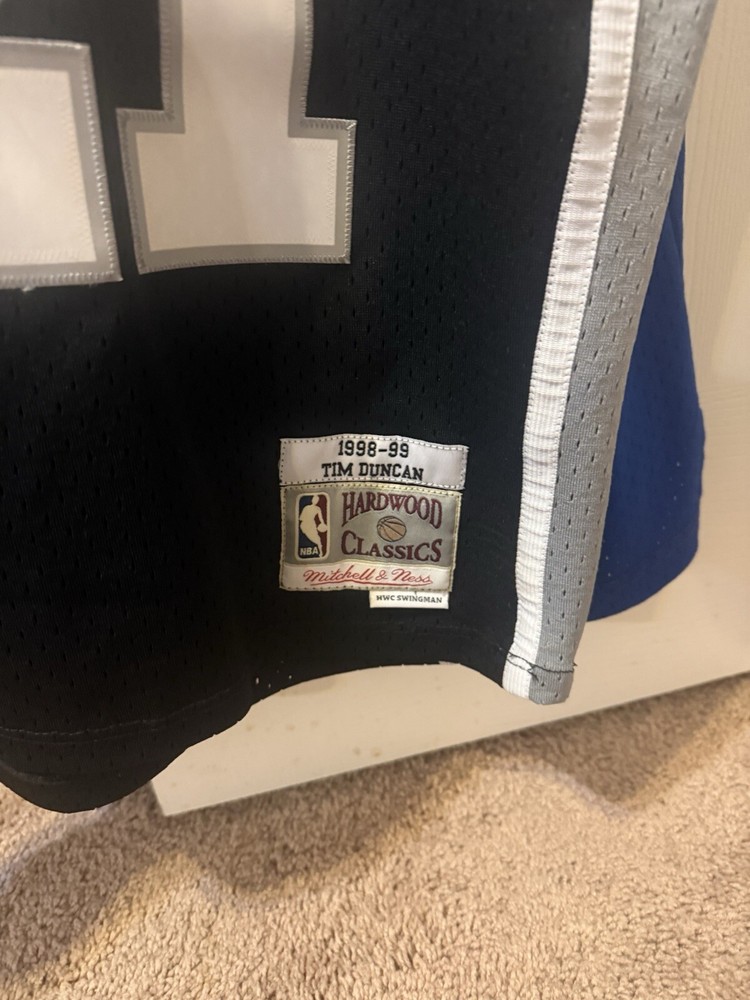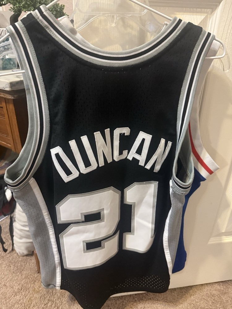 Team:San Antonio SpursColor:BlackProduct:JerseyBrand:Mitchell & NessSport:BasketballOfficially Licensed:YesLeague:National Basketball Association (NBA)Player:Tim DuncanPre & Post Season:Regular SeasonSize:SGender:MenCountry/Region of Manufacture:China