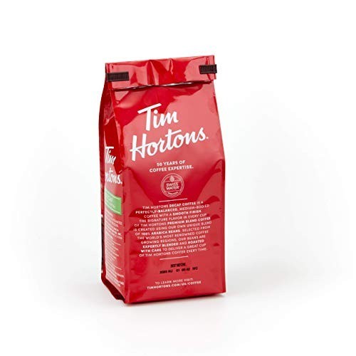 Tim Hortons Decaf Blend, Medium Roast Ground Coffee, Perfectly Balanced, Always Smooth, Made with 100percent Arabica Beans, 72 Ounce,6 , 12 oz Bags. Item description from the seller: Tim Hortons is Canada’s favorite coffee for a reason. For over 50 years, we have overseen every step in our coffee process to ensure we offer you the quality you deserve. Now you can make your favorite Tim Hortons brew at home, your way. Our Decaf Blend coffee grounds can be used, with a filter in automatic coffee makers, in a french press, as a pourover, or even to make cold brew coffee. Drink it black, with milk, or add two creams and two sugars to make our signature Double Double at home. We roast our own beans to ensure your coffee will taste, the same cup after cup. Tim Hortons is happy to serve you coffee with care, from bean to cup and invite you to share our sentiment of positivity and togetherness with your community. Decaf Medium Roast: Our original blend coffee is expertly roasted, delivering a perfectly balanced flavor, with a smooth finish. Our signature blend has not changed in over 50 years and only three lucky people know the recipe. Brew It Your Way: Use your favorite blend in your automatic coffee maker, french press, pourover, and even for cold brew. Top Quality Beans: We only use 100percent Arabica beans, from the most renowned regions of Central and South America that are carefully selected, by our experts to consistently deliver the best blend possible. Signature Flavor: Our beans are expertly roasted for the taste and aroma you know and love. We can deliver an amazing cup of coffee, no matter where or how you enjoy it. Cup of Canada: Whether you like a dark roast, a classic cup of tea, or the rich flavor of french vanilla, we have a wide variety of coffee, tea, and specialty beverages that feature our signature flavors, ready for you to enjoy any time of day.