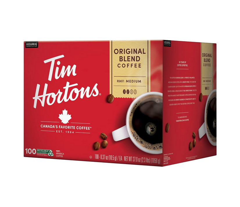 Product details For over 50 years, the signature flavor in Tim Hortons premium blend coffee has been created using a unique blend of 100% Arabica beans. Selected from the world's most renowned coffee growing regions, our beans are expertly blended and roasted with care to deliver a great cup of Tim Hortons coffee every time. The Story of Tim Hortons Coffee Shops We were founded by one of Canada's most celebrated hockey stars, Tim Hortons. In 1964, Tim opened a coffee and donut shop in his neighborhood setting out to create a place where anyone could go at any time and feel at home. A place where the door was always open for neighbors to pop by, where there was always a pot of coffee on (a fresh pot every 20 minutes to be exact). That single coffee shop became such a favorite that more locations soon began to open in neighborhoods across Canada, then the US, and now parts all over the world. Our Coffee We couldn't be prouder to brew Canada's favorite coffee. Whether you need a coffee fix each morning or want to relax in the afternoon, you can always count on us for a fresh, great-tasting cup. No matter where you are in the world, our K-Cups bring you the taste of Tim Hortons at home. Our Signature Taste Tim Hortons Original hasn't changed in over 50 years, and is such a secret that only 3 people (and we're not telling who!) know the recipe. Our coffee team tastes more than 500 cups every single day to ensure that every cup tastes the same.