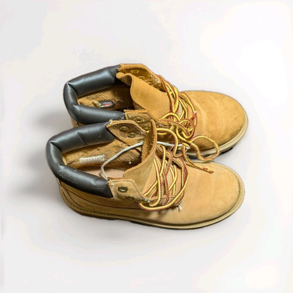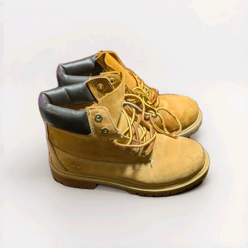 The Timberland Boots in youth size 2.5 Wheat are weatherproof combat-style boots designed for both boys and girls. These beige boots are perfect for walking, school, and hiking activities, making them a versatile and durable choice for young adventurers. With the trusted Timberland brand and standard shoe width, these boots offer both style and performance for active kids. The rugged design and reliable construction make them a practical and stylish option for everyday wear.