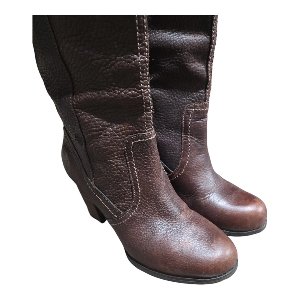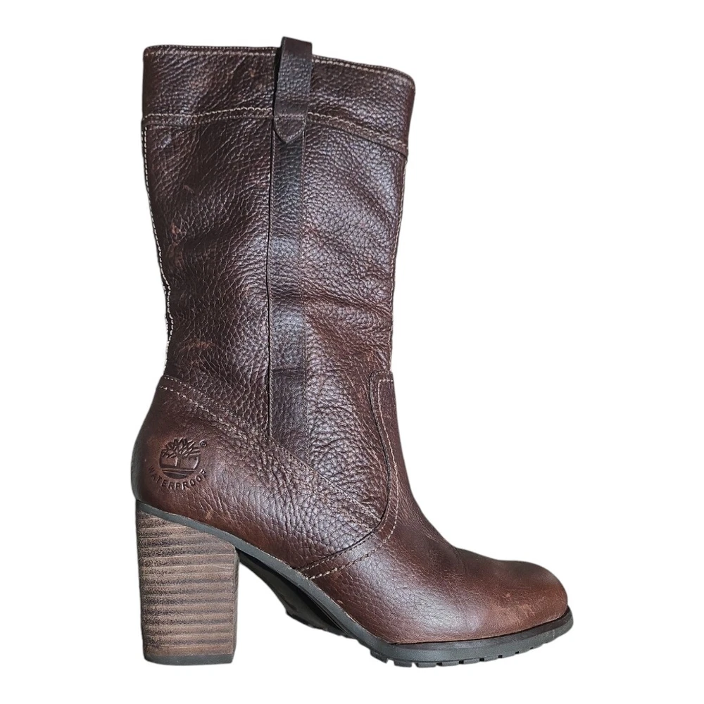 Elevate your riding style with these Timberland Rudston Women's Brown Leather Mid-Calf Pull-on Boots. Crafted from premium quality leather, these boots are designed to provide comfort and durability. The pull-on closure ensures an easy and hassle-free wear, making it a perfect choice for busy women. The boots come in a stylish brown color and feature a mid-calf shaft style, making it perfect for any occasion. The Timberland brand ensures you get the best quality product, and the model Rudston is designed to provide maximum support and comfort. These boots are perfect for women who want to look fashionable while still being comfortable.