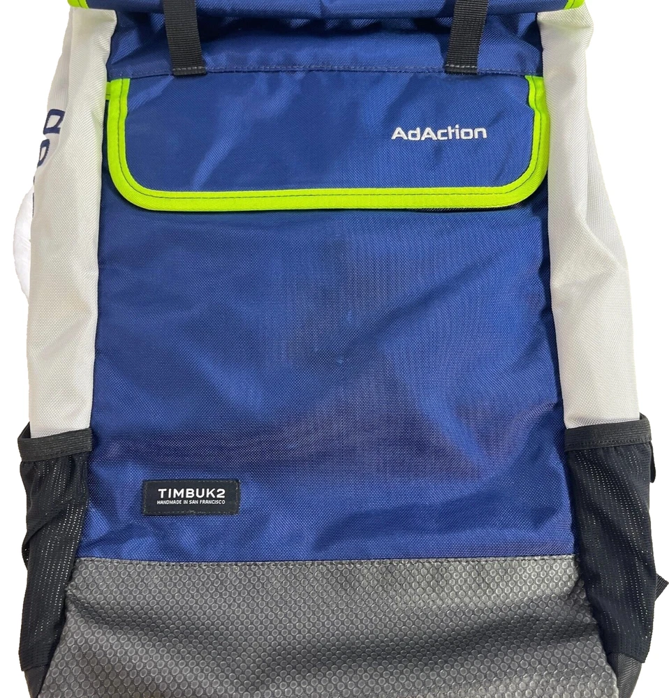 Timbuk2 Laptop Backpack Roll Top Prospect Commuter Bike Bag Blue Neon USA Made Company Embroidered tag on front pocket panel & side of bag panel. Small signs of wear, shown in photos--final two photos are close ups: *** a little wear to the front panel with a couple pinholes/fraying but surface level cosmetic and otherwise EUC *** A weather-resistant bike-friendly commuter bag. The roll-top construction gives the bag a contemporary profile, but stow the buckles in the front stash pocket for an easy open-shut velcro flap format (either way, a zipper on the back offers on-the-go access to the main compartment, including a tricot-lined pocket for your laptop or tablet). With a waterproof TPU liner, ventilated back panel and plenty of expandable room for extra layers, you’re covered all day. Take it wherever you want to go: the Prospect is ready when you are. Flap closure for quick access or roll-top for expandable volume and weather protection Easy wipe internal TPU liner Rear zip offers entry to main pocket without opening the flap Internal organizer for pens, phones, and other small stuff Large main compartment fits books, lunch, and a light jacket Water Bottle Pockets Please refer to photos for the most accurate measurements, description, and estimation of the item's condition. We’re happy to answer any questions or provide additional photos before purchase if requested! All items are sold as is and we try our very best to note any issues with condition in both our description and close up photos. Please remember that colors can look different across different devices and monitors. Condition: Please see photos for measurements. Any further measurements needed? Just ask! Company Embroidered tag on front pocket panel & side of bag panel. Small signs of wear, shown in photos--final two photos are close ups: *** a little wear to the front panel with a couple pinholes/fraying but surface level cosmetic and otherwise EUC *** FAST SHIPPING! Orders are usually shipped within 24 hours M-F Friday orders will ship Monday morning at the latest, unless there is a postal holiday. Feel free to send us a message before purchase if you?d like a certain delivery service or combined shipping offers. Still got Questions? Send us a message! We do our best to accurately and thoroughly represent each item in images and condition description, but, if there's any further information you'd like before purchasing or have a shipping request, please don't hesitate to ask and we'll get back to you asap. RETURN POLICY: Please reach out prior to purchase with any questions or shipping requests. Returns are accepted within 30 days, buyer pays return shipping. Refund issued upon receipt of item in original condition. Full refund (minus original shipping) will be issued once we receive the item assuming it is in the exact same condition as it was shipped.(Clean, unaltered, tags still attached if item was new with tags, etc.) We request that you select "Item does not fit" when returning an item that does not fit. Thank you for shopping small and supporting our lil' Rodeo!