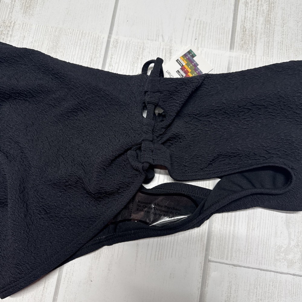 $ 12.12WeWoreWhat Bikini Top XL Underwire Wide Pleated Strap Black Claudia Rose Bud NWT