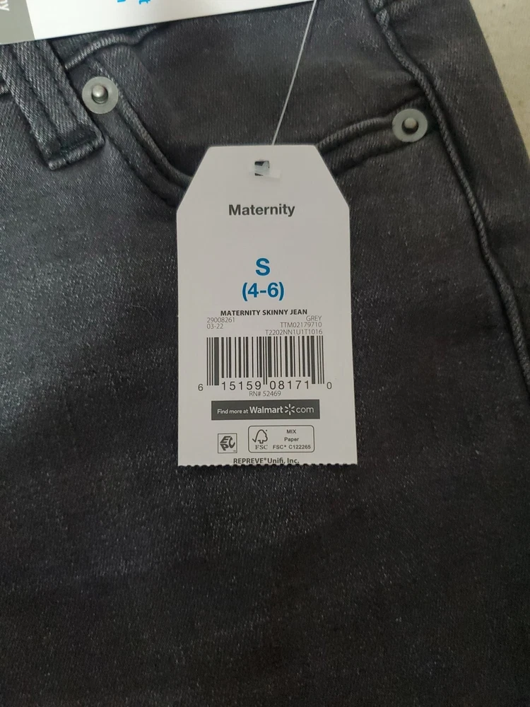 Brand new with tags. Size small (4-6) Crafted in premium denim with a soft and stretchy feel, these Maternity Skinny Jeans from Time and Tru deliver support and style through your pregnancy featuring a seamless knit belly band.