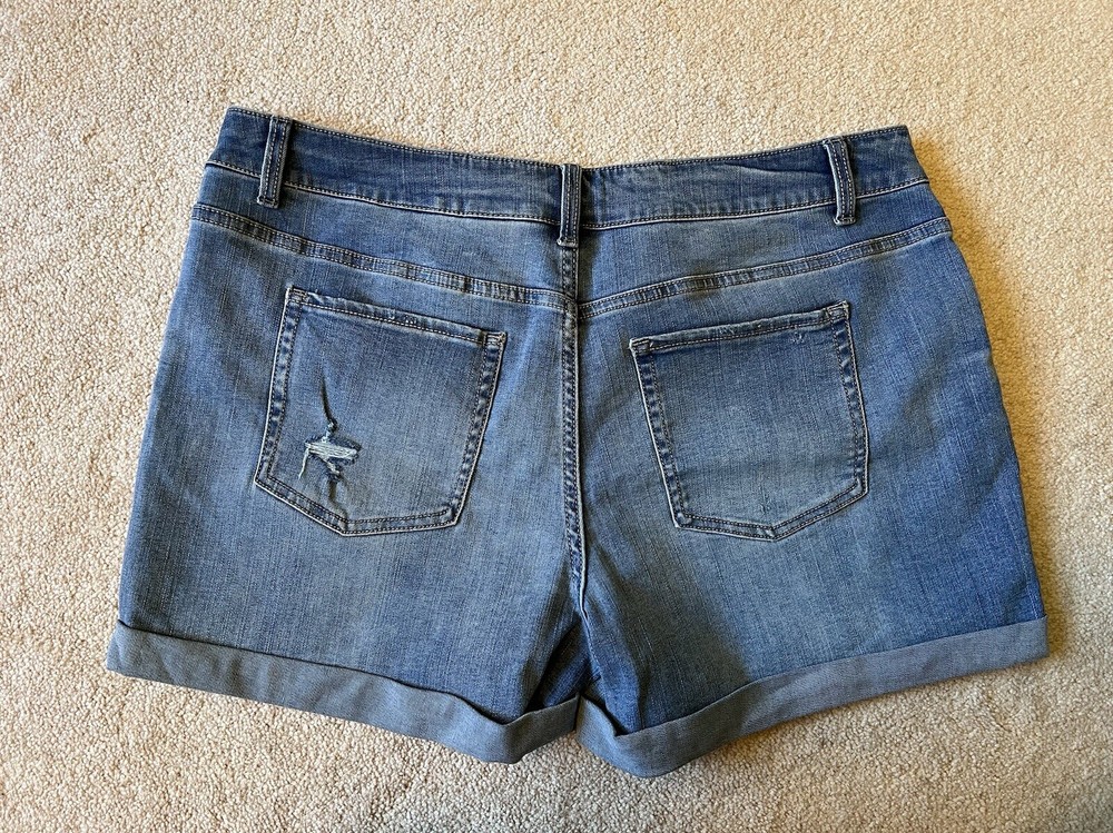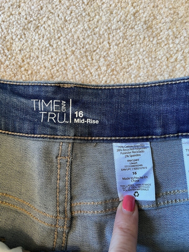 SHORTS DESCRIPTION : MADE BY : Time and Tru SIZE : 16 COLOR : Medium denim blue DESCRIPTION : Denim Shorts - 5 pocket style - button/zip closure - cuffed - distressed - mid-rise MATERIAL : Cotton / Polyester / Spandex CONDITION : Excellent used condition! PAYMENT : Payment is due within 3 days of the end of the auction. SHIPPING : Shipping is via US Post Office ONLY. RETURN POLICY : I list items to the best of my ability and try to describe each item as best as possible. Most of the items I sell are purchased at thrift shops/garage sales/etc, therefore I do not know the history to each item. Unless stated new, they are pre-owned items. I cannot guarantee items I sell are from smoke/pet free homes originally. My home is smoke free, however, I do have pets. Because computer monitors and phone screens vary in their ability to display color, color of the actual item may vary slightly. Color is not an acceptable reason for return. Items may be returned for a refund of bid price only (I will not refund any postage). Refunds will be issued once I receive the item back in the same condition as it left. If you have any problems please email me before leaving feedback. Please check out my other items - I will gladly combine shipping! Email me if you have any questions.