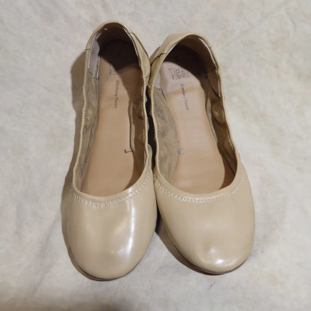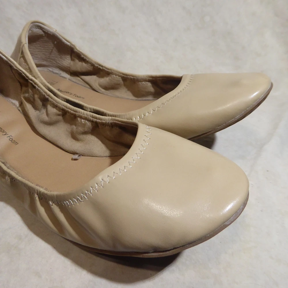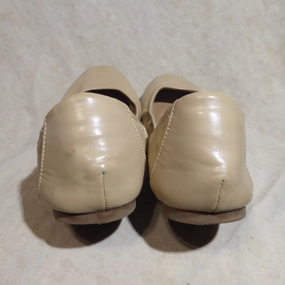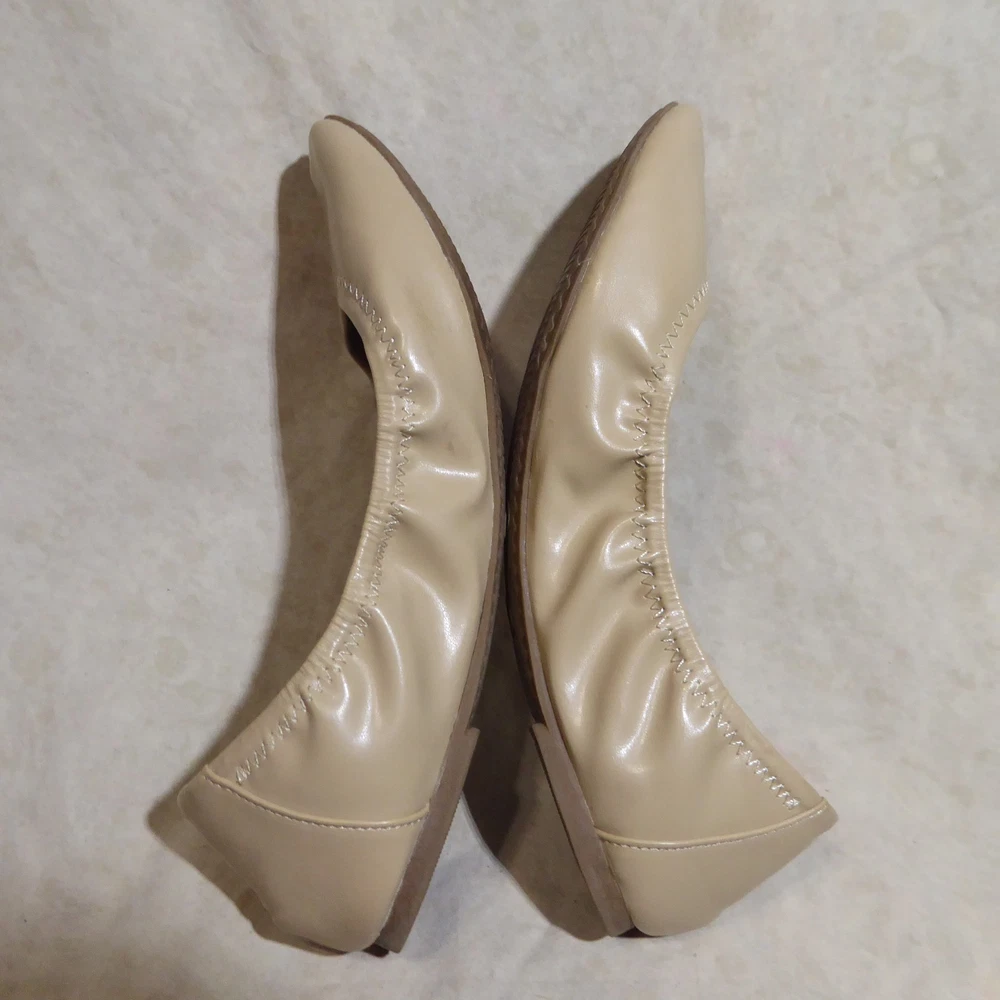 These are Time and Tru size 9 M classic scrunch ballet flats in glove soft nude beige leatherette with cushioned insole. In good condition inside and out; see all of the photos for details. One pair only; the photos are of this actual item. Please note: You'll get discounted USPS shipping with tracking. Plus, we combine shipping on multiple pairs and will refund any savings. We take a lot of photos and note any size discrepancies in our listings to insure a more accurate fit. Still, if your shoes don't fit you can return them for a refund for 30 days. (We automatically approve a "Doesn't fit" return.) Just start the return process to get a free return shipping label. Thanks for considering; we appreciate your business!