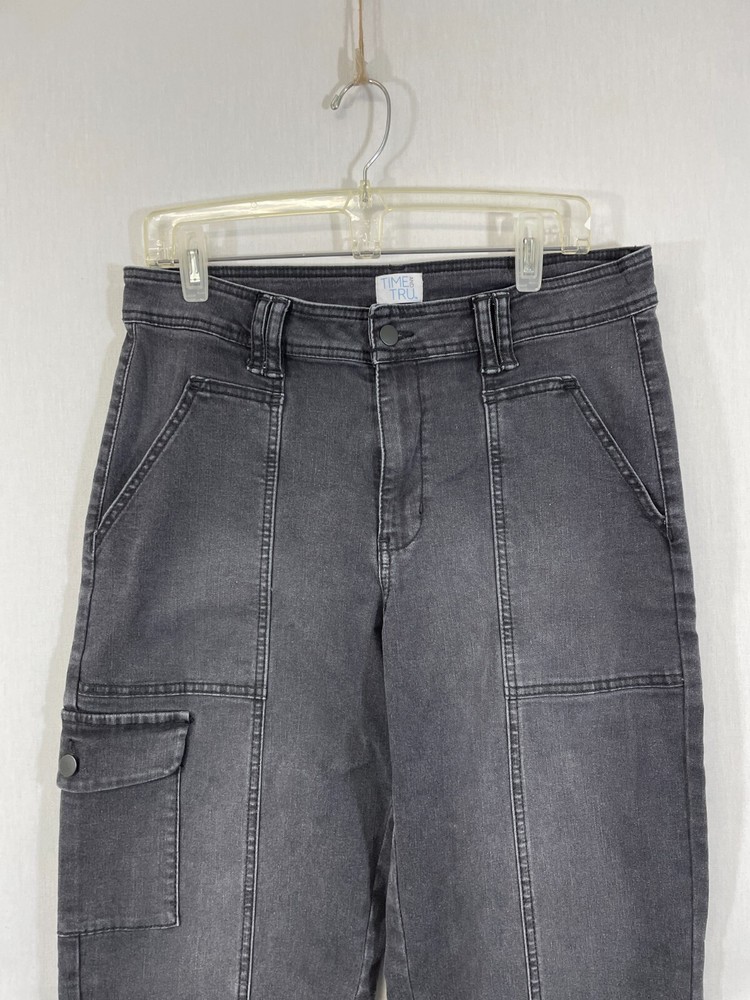 Time And Tru Womens Black High Rise Cargo Pockets Dark Wash Cropped Jeans Sz 12 Brand: Time And Tru Department: Women Color: Black Size: 12 Type: Jeans Style: Cropped Pattern: Solid Material: 72% Cotton, 23% Polyester, 2% Spandex, 3% Other Fiber Closure: Button Occasion: Casual Fit: Regular Vintage: No Country/Region of Manufacture: Bangladesh Condition: Pre-Owned, In Good Condition SKU: 1-0597-0023 Measurements Waist: 17" Inseam: 26" Leg Opening: 7.5" Rise: 14.5" “Please examine and study all pictures carefully for damage, wear, condition, and missing parts and pieces. We try to state any defects but the items will arrive as they are pictured. Thank you for your purchase! Please check out our other listings. My Purpose Thrift's mission is to work and partner with various local ministries, organizations, and nonprofits to help facilitate and monetize physical donations. We carefully select items that are in good to great condition to sell online and offer you the best products and best service. Be assured that your purchase will help local ministries/charities! We are a registered 501(c)3 organization. All Offers will be considered.”