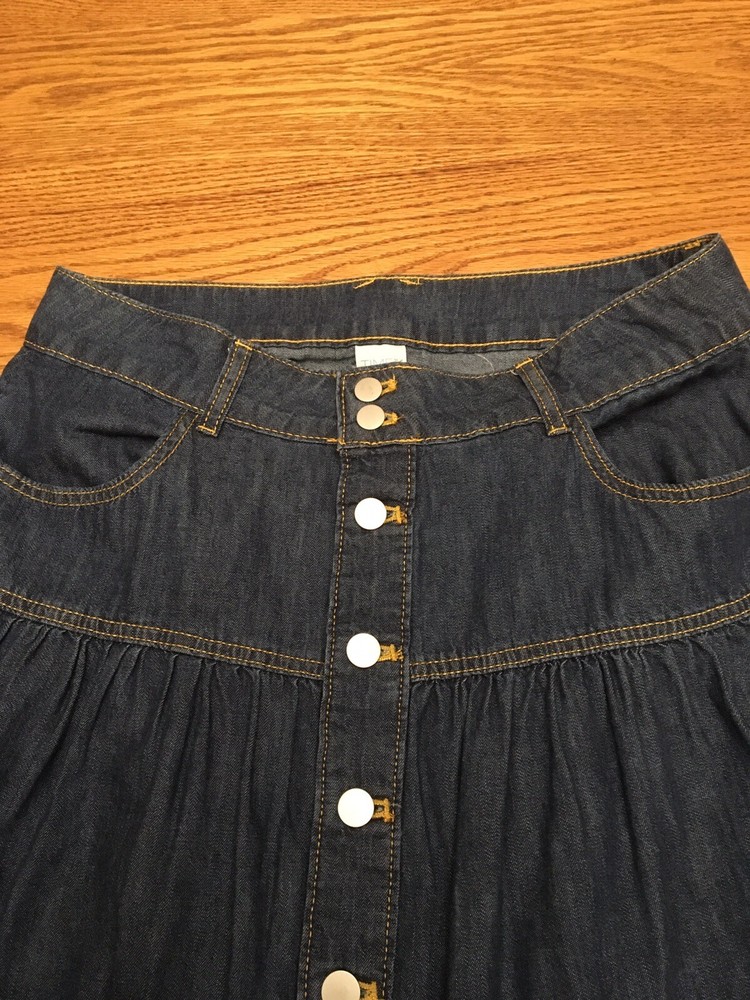 This beautiful Time and Tru denim maxi skirt in size 10 features button closure, mid-rise, and tiered design. It comes with pockets and is made of 100% cotton, making it machine washable for your convenience. The blue color adds a touch of elegance to the skirt, while the denim fabric type offers both durability and comfort. This skirt is perfect for any season, be it winter, summer, fall, or spring. The skirt length is long, making it ideal for formal and casual occasions. The brand, Time and Tru, is known for its quality products, and this skirt is no exception. Get yourself this stunning skirt today and enjoy the comfort and style it brings. Hip to hip 16.5" Top of waist to bottom hem 30" Please see all photos. Contact seller for any questions.