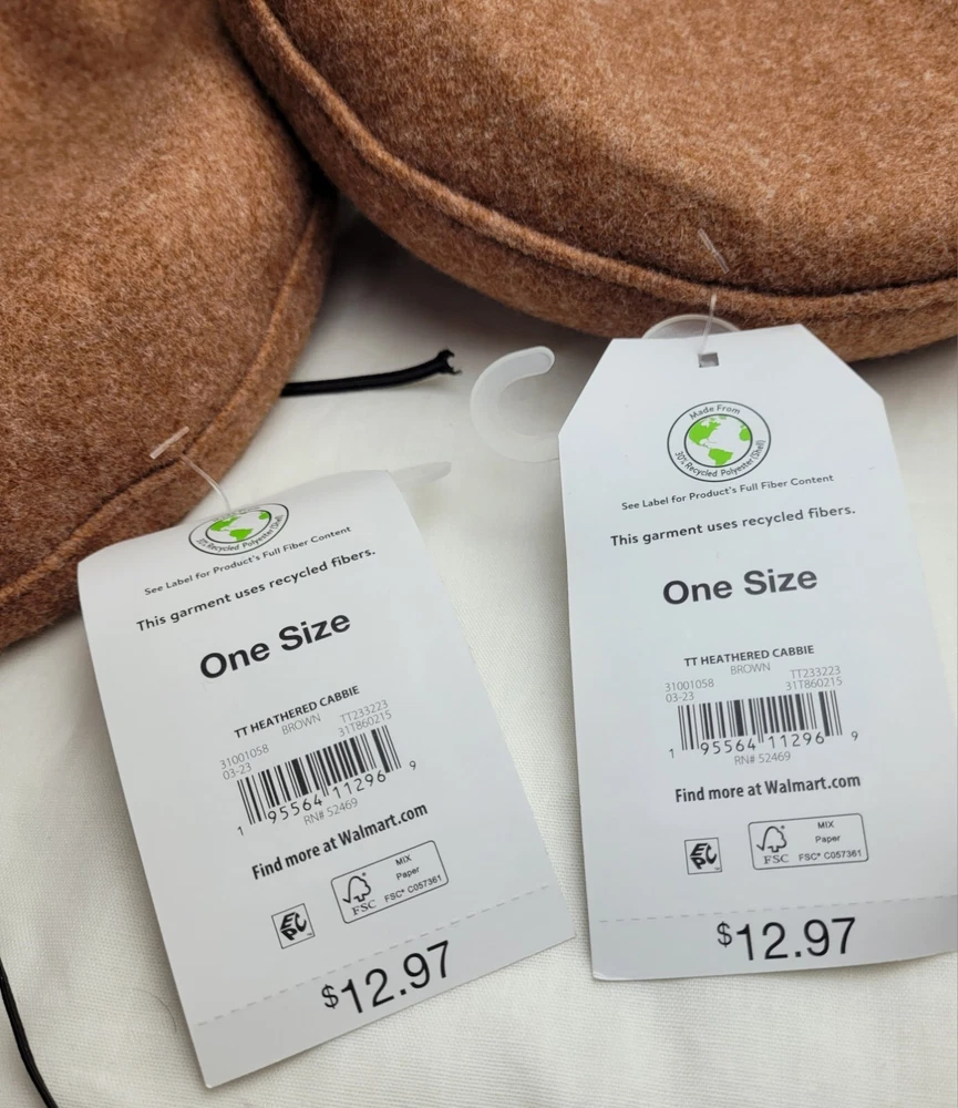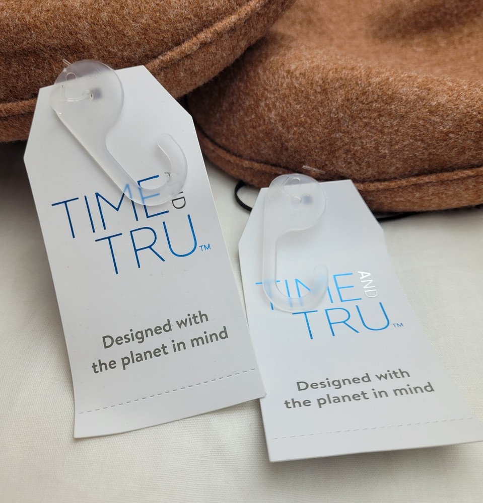 Time and Tru Women's Heathered Flannel Cabbie Brown Set Of 2 One Size New with Tags