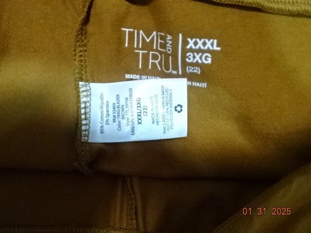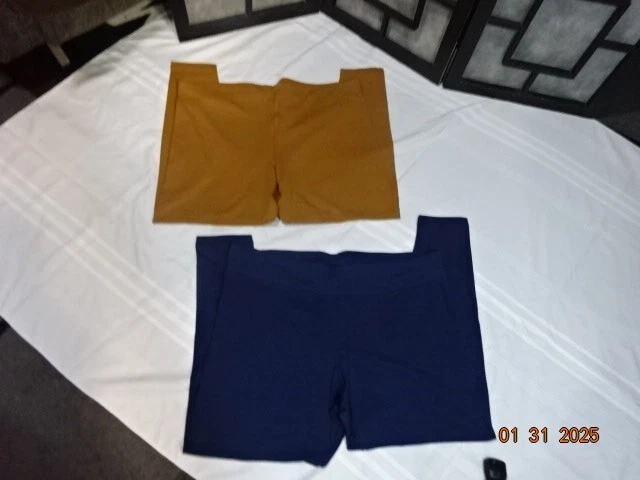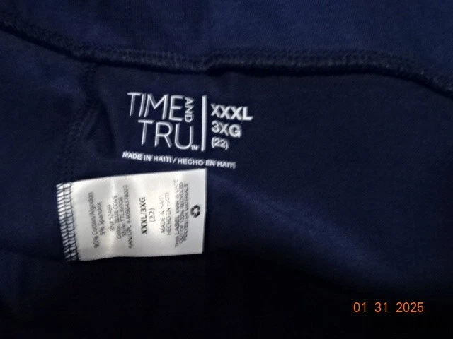 Season: Winter, Summer, Spring, Fall Type: Leggings Department: Women Style: Ankle Size Type: Regular Fabric Wash: Does Not Apply Personalize: No Garment Care: Machine Washable Handmade: No Size: XXXL 22 Rise: High (Greater than 10.5 in) Fabric Type: Blended Fabric Product Line: Time and Tru Pattern: Solid Features: Stretch Country/Region of Manufacture: Haiti Vintage: No Brand: Time And Tru Material: Cotton, Spandex Character: Does Not Apply Color: (1) Blue (1) Brown Occasion: Casual