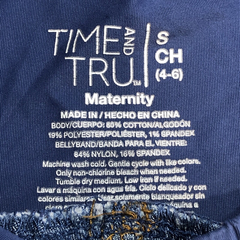 Expecting a child? These Time And Tru skinny denim jeans are perfect for you. They are designed for women's maternity wear and are available in size 4-6. The blue color and solid pattern make them stylish and versatile. The mid-rise waistline and 27-inch inseam provide a comfortable fit. The 5-pocket design adds functionality to this stylish pair of jeans. These jeans are made of a cotton blend and are machine washable. They are not distressed and are not vintage. The regular fit ensures comfort and ease of movement. These jeans are perfect for everyday wear, and the pockets provide ample storage space. Buy these jeans now and enjoy the comfort and style they offer.
