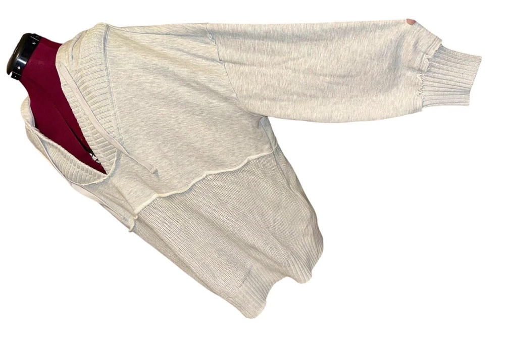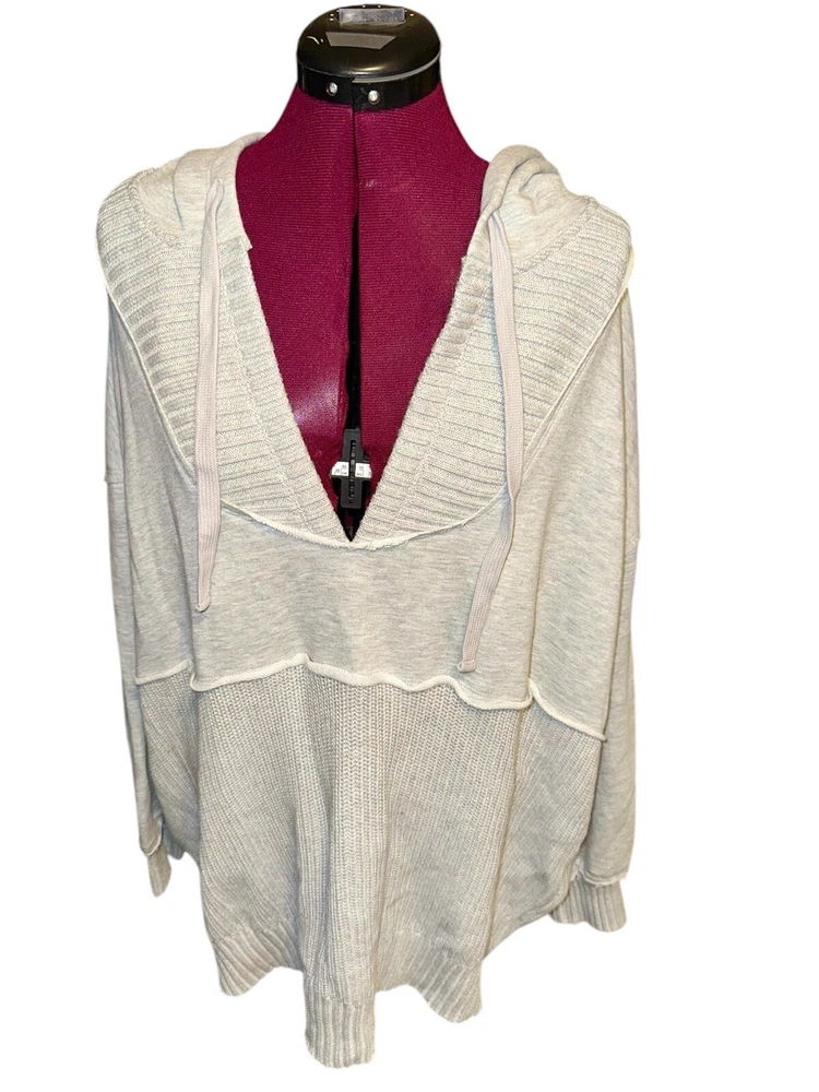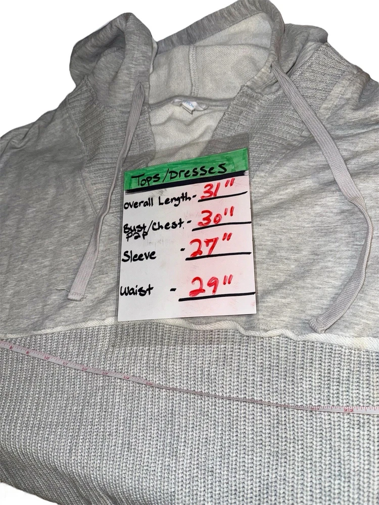 Elevate your activewear with the Time and Tru Women's Mixed Media Hoodie in a versatile gray shade. Tailored for a comfortable fit, this hoodie comes in a plus size 3XL, catering to those who seek a blend of style and functionality. Its long sleeves, V-neck design, and drawstring accents offer a classic look with a modern twist. Crafted from a soft blend of acrylic, polyester, and cotton, this pullover hoodie ensures warmth and ease of movement. Whether you're hitting the gym or running errands, its hooded feature provides an extra layer of protection against the elements. A solid pattern keeps the design simple, making it a perfect staple for your wardrobe. Time and Tru Women's Mixed Media Hoodie Size 3XL Why have one when you can have both? Part sweater, part sweatshirt and 100% awesome, Time and Tru’s Mixed Media Hoodie is your new casual-day fave for everything from running errands to hanging at home. Relaxed and slightly oversized, this V-neck hoodie is the perfect match to your go-to denim or leggings. Material: 60% Cotton/40% Acrylic Care: Machine washable Country of Origin: Imported Size: Model is 5’3” and is wearing size XL Fit: Relaxed Neckline: V-neck with attached hood Closure: Pullover style Sleeves: Long sleeves Pockets: None Features: Mixed media design Womens Mixed Media Hoodie from Time and Tru Please refer to pics for measurements and any potentiall imperfections; Thank you!